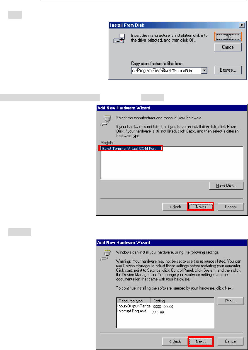 42. Select [iBurst Terminal Virtual COM Port (COM X)], and click the [Next >] button.