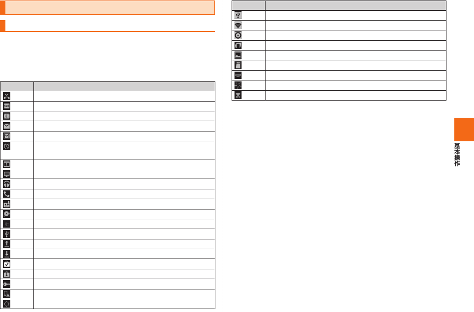 ステータスバーの左側には不在着信、新着メールや実行中の動作など