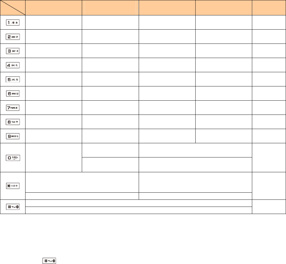 漢字 "Kanji", "Hiragana" entry mode (full size) 1234 "Number" entry mode (half size)