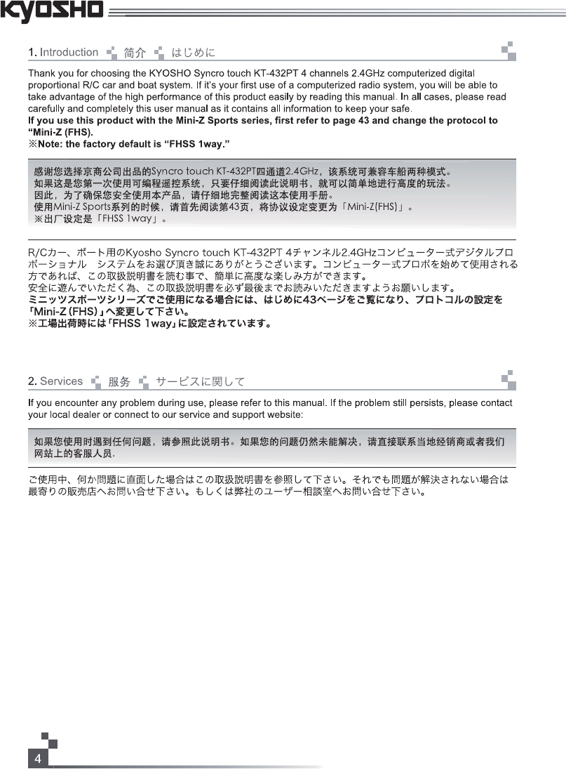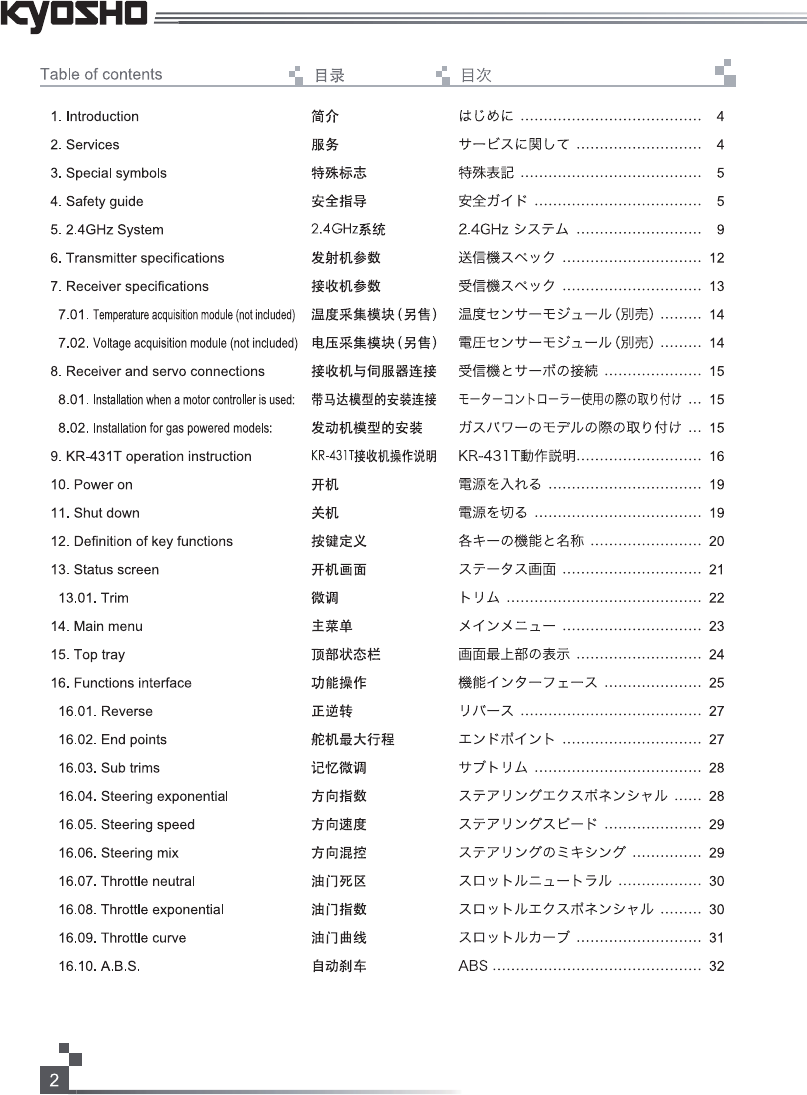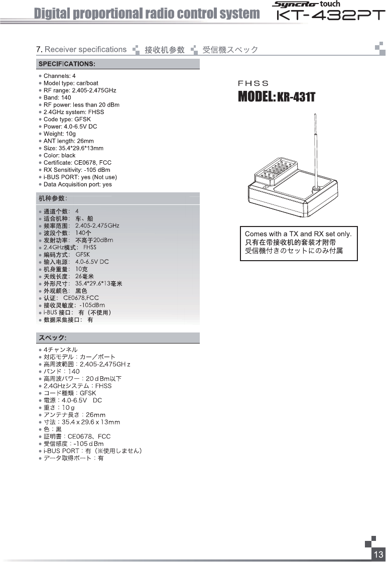 Kyosho of America KR431T DIGITAL PROPORTIONAL RADIO CONTROL SYSTEM User Manual P001 KT 432PT out