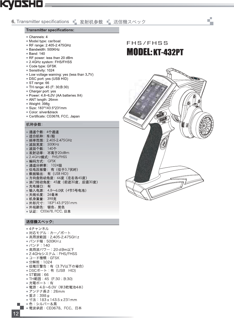 Kyosho Corporation of America DIGITAL PROPORTIONAL RADIO CONTROL SYSTEM P001 KT 432PT out