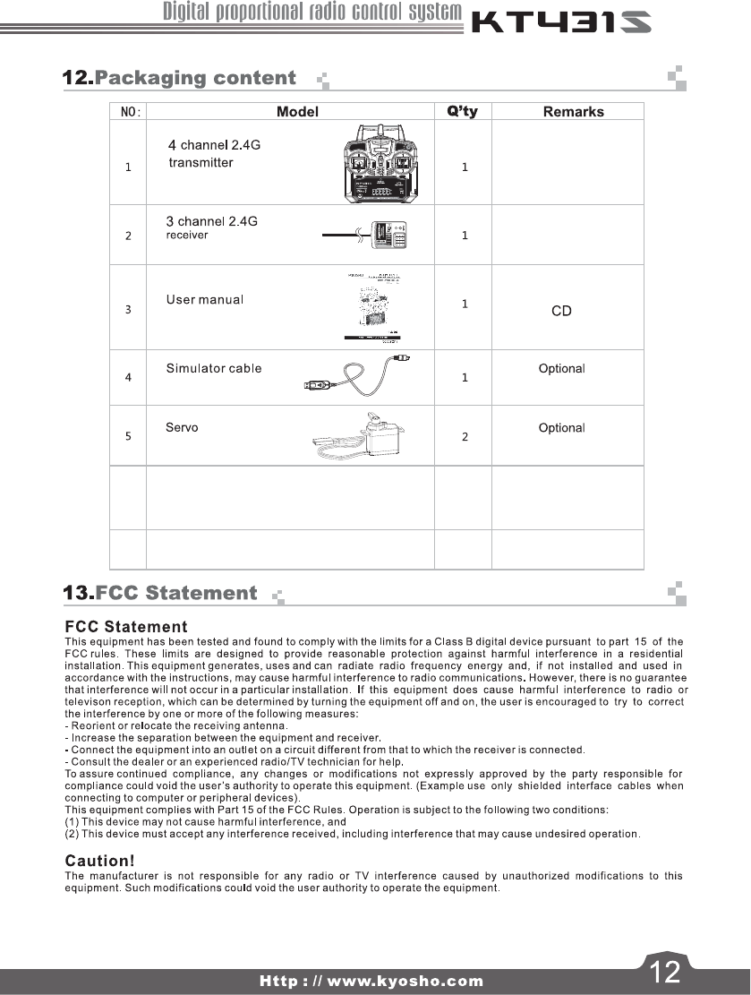 Kyosho of America KT431S DIGITAL PROPORTIONAL RADIO CONTROL SYSTEM User Manual 1