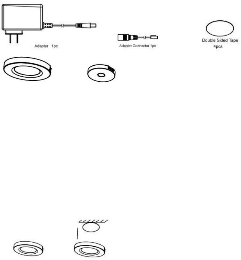 Plug the AC/DC adapter into the power supply, the LED puck light is ready to work.