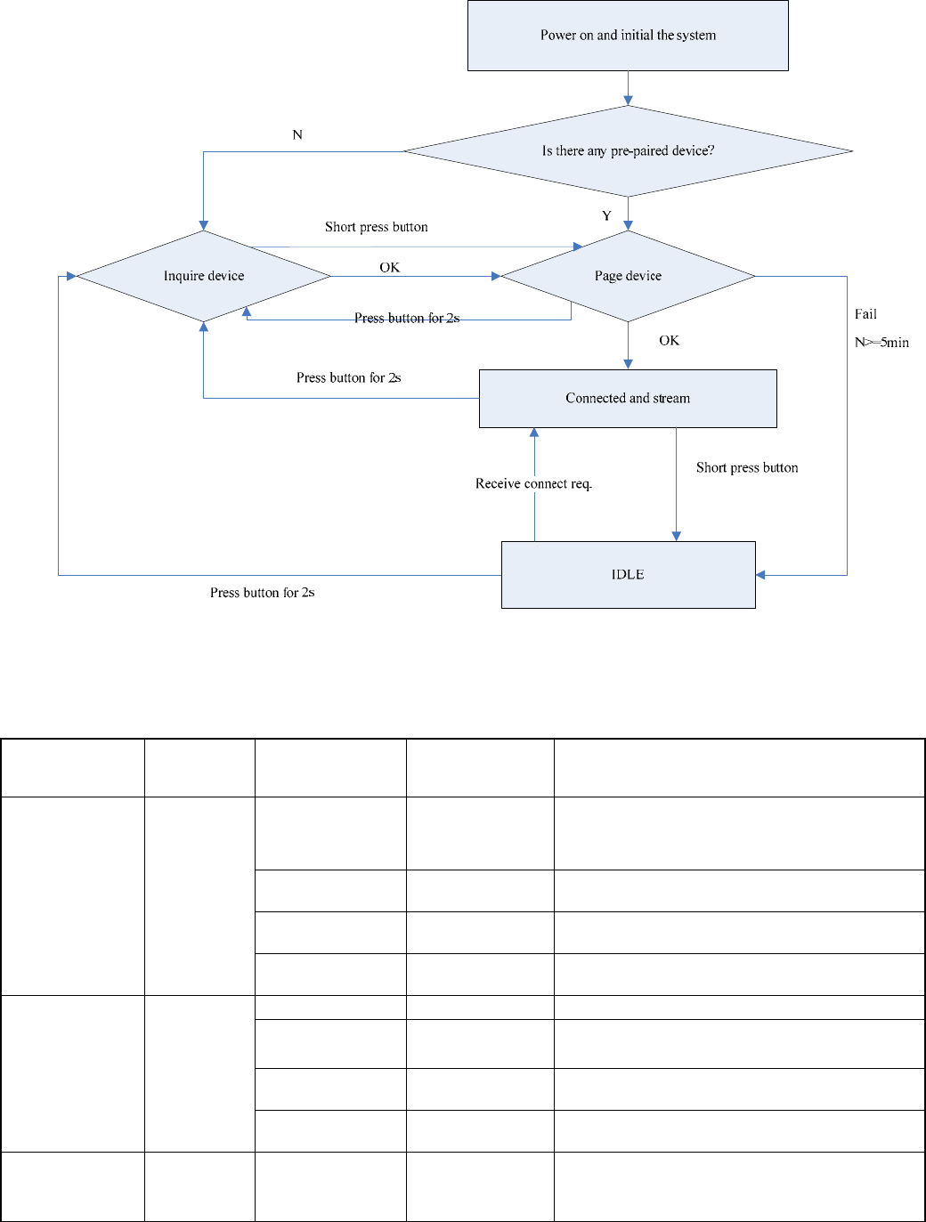 Duration of pressing the pairing button can have different function as shows in the