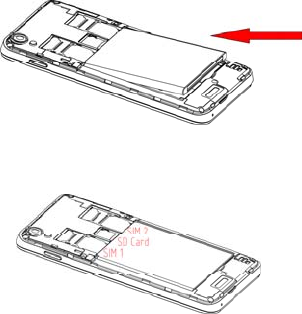 downwards; pull the battery cover downwards and lift the cover upwards to remove