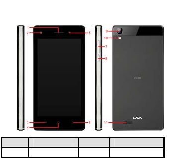 2 Front flash light 8 Power Key/Lock key