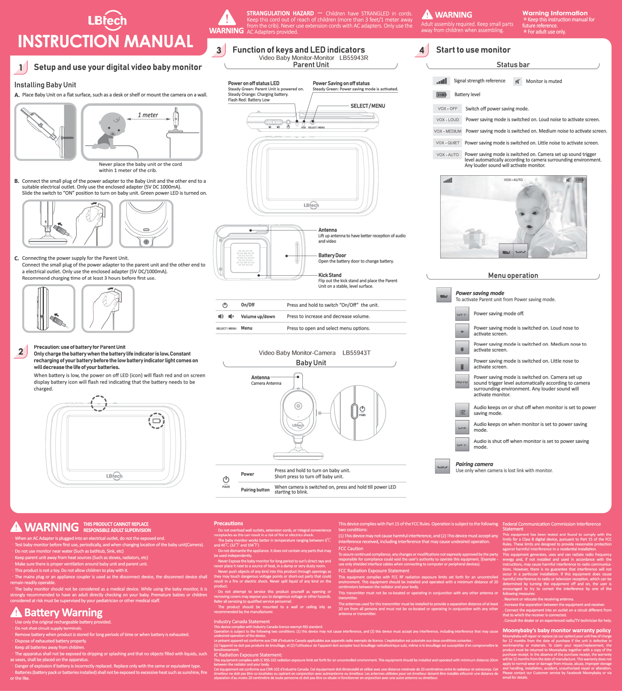 LB Technology 55943TR Video Baby Monitor-Camera User Manual UserManual