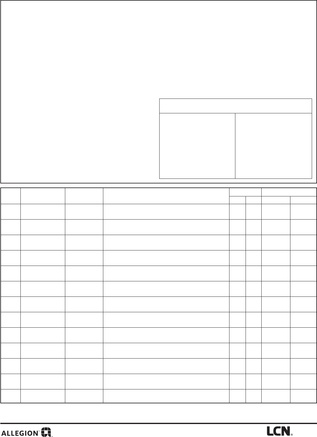 n Custom wiring diagrams can only be ordered by and shipped to current Allegion Channel Partners