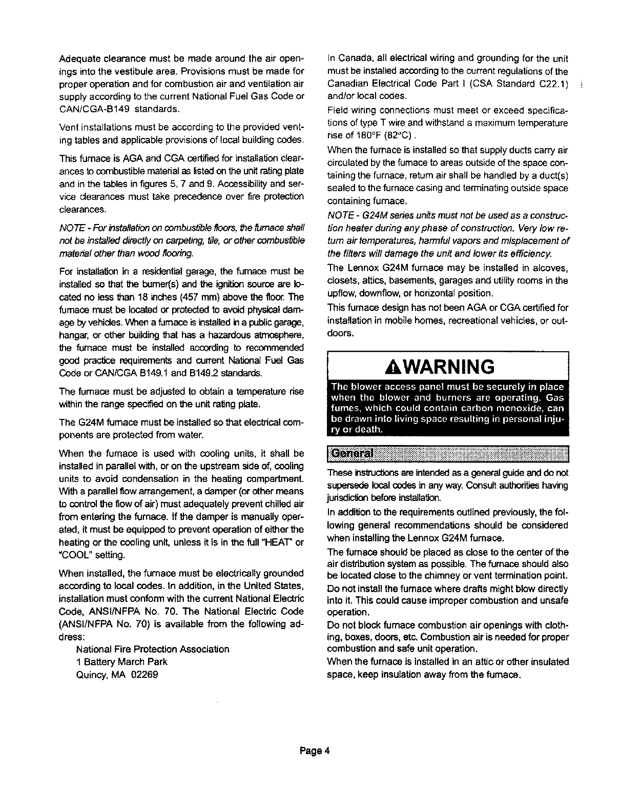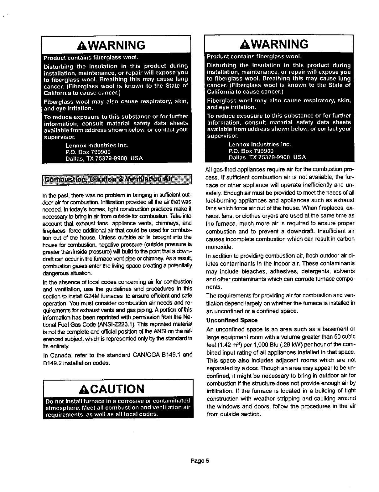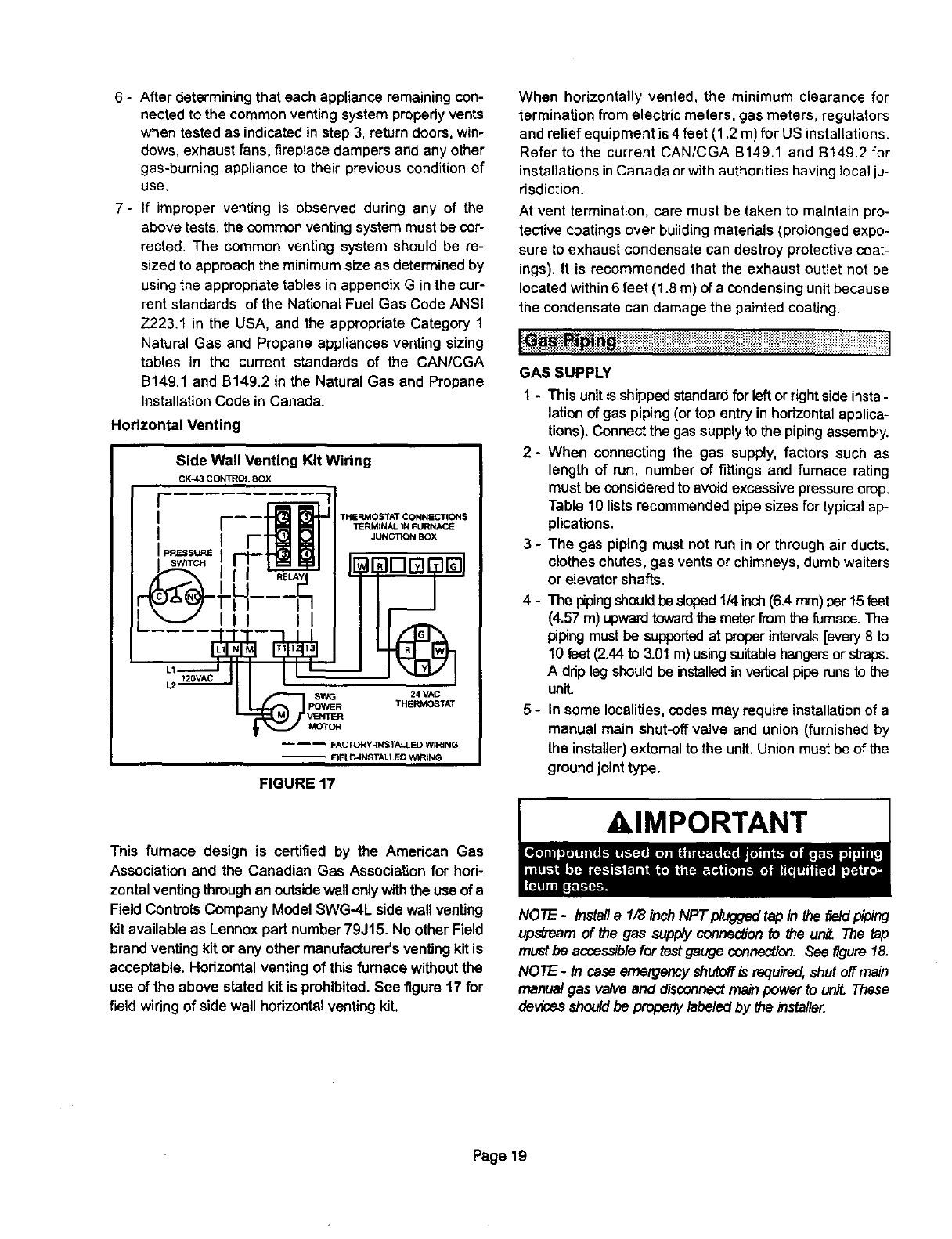 LENNOX Furnace/Heater, Gas Manual L0406231