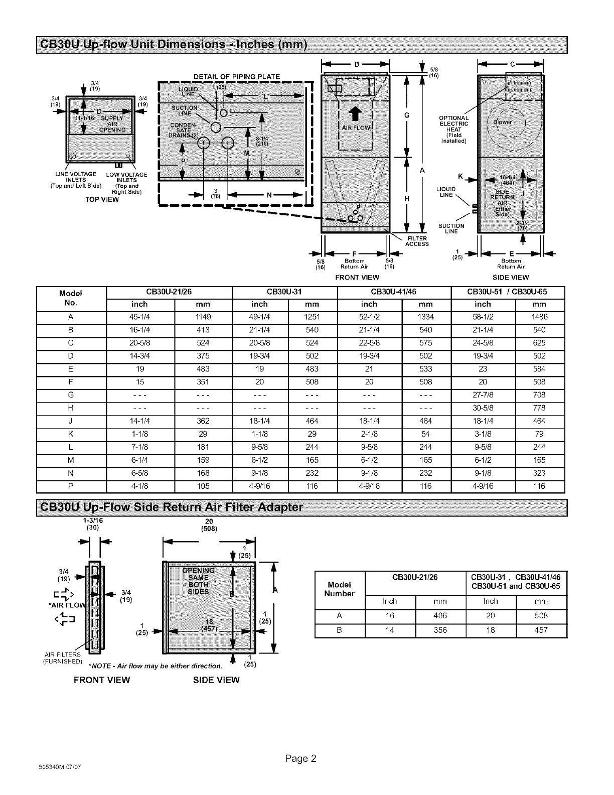 CB30U Up-flow Side Return Air Filter Adapter ..... 2