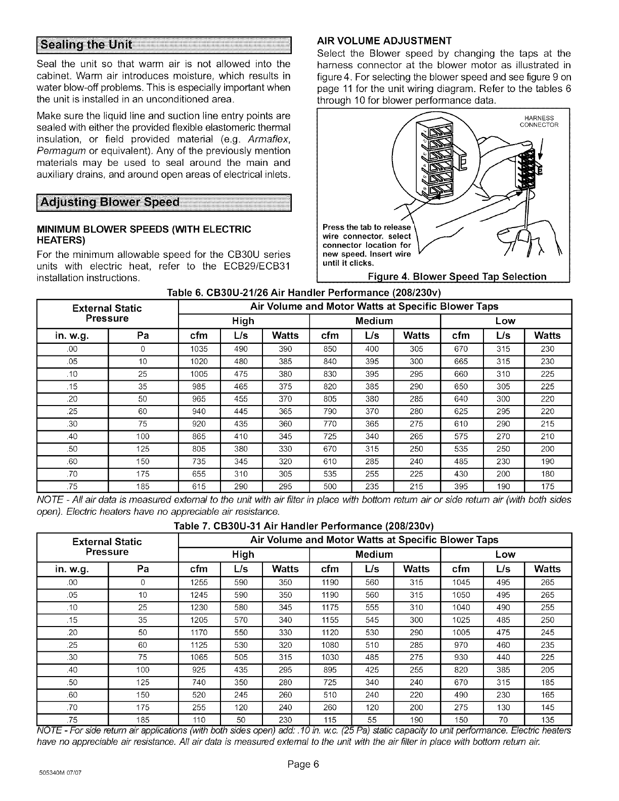 CHART ON UNIT FOR BLOWER SPEED INFORMATION