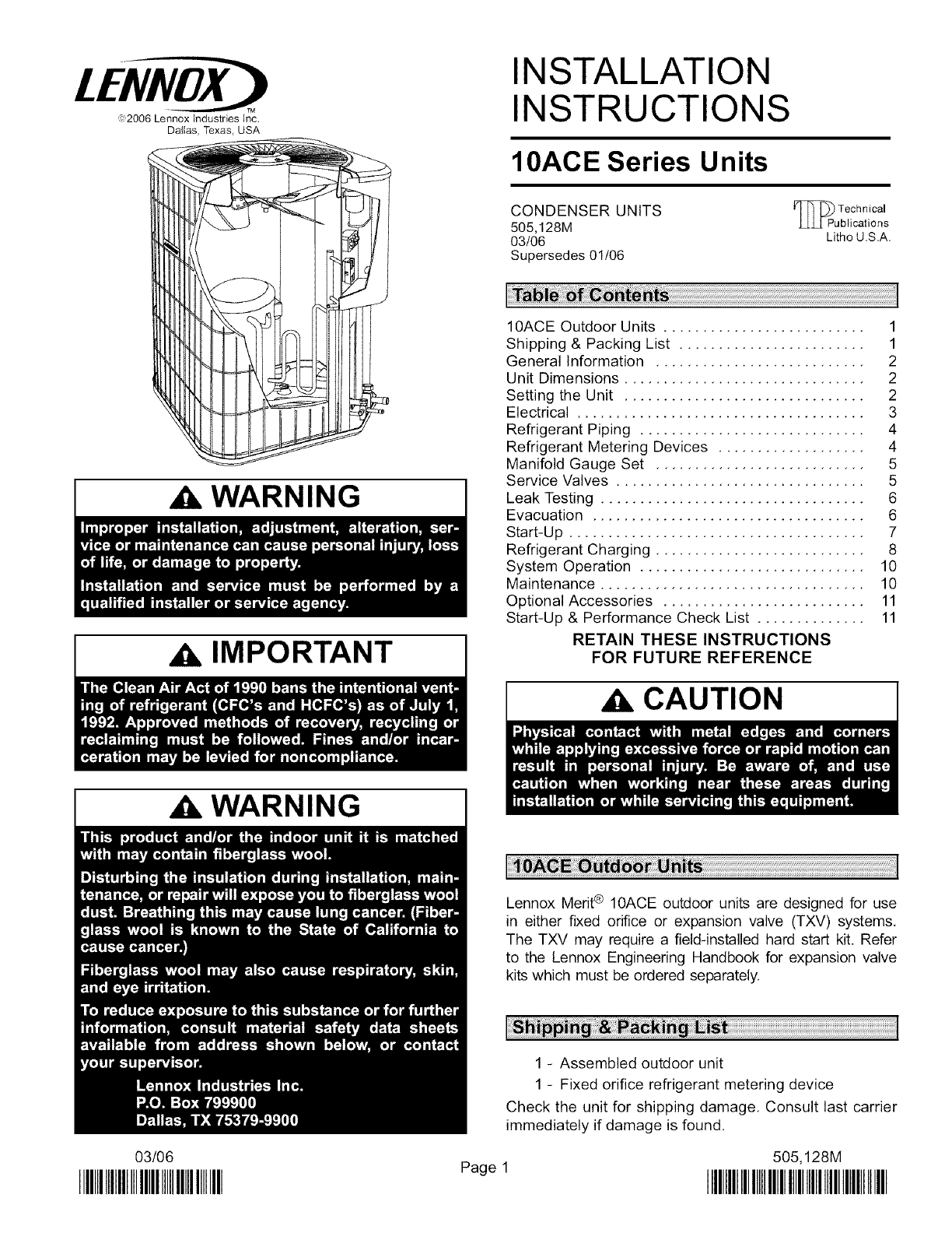10ACE Outdoor Units .......................... 1