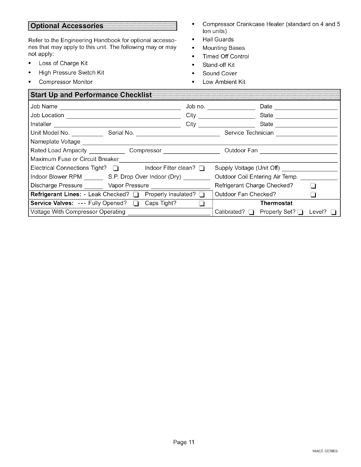 Start-Up & Performance Check List .............. 11