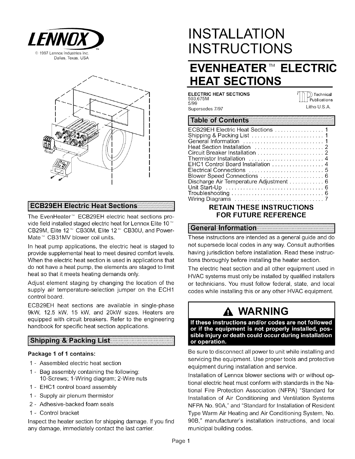 The EvenHeater'" ECB29EH electric heat sections pro-