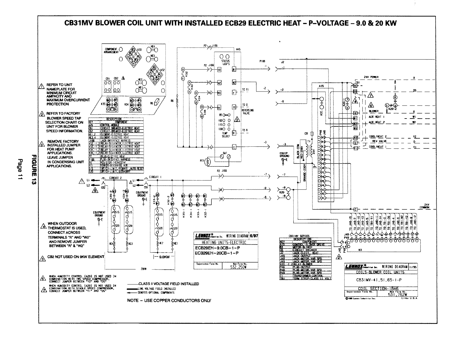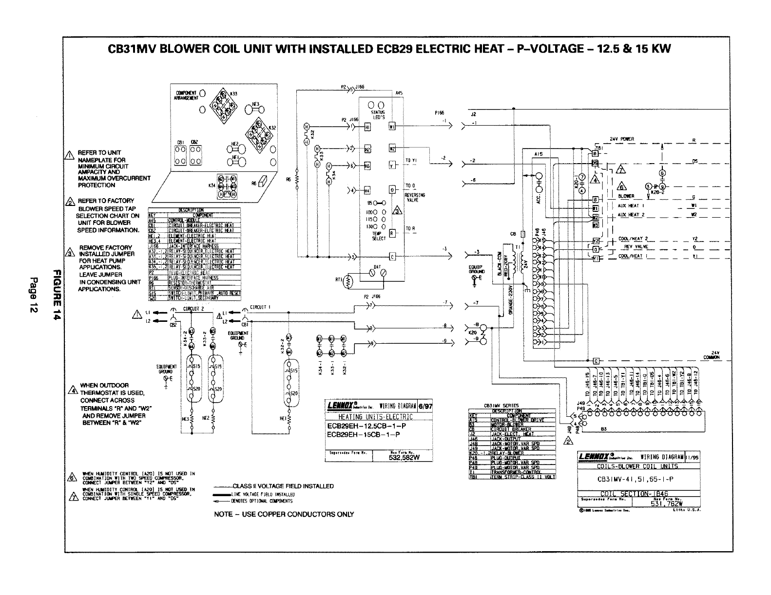 CB29M/CB30M/CB30U BLOWER COIL UNIT WITH INSTALLED ECB29 ELECTRIC HEAT - P VOLTAGE - 12.5 & 15 KW