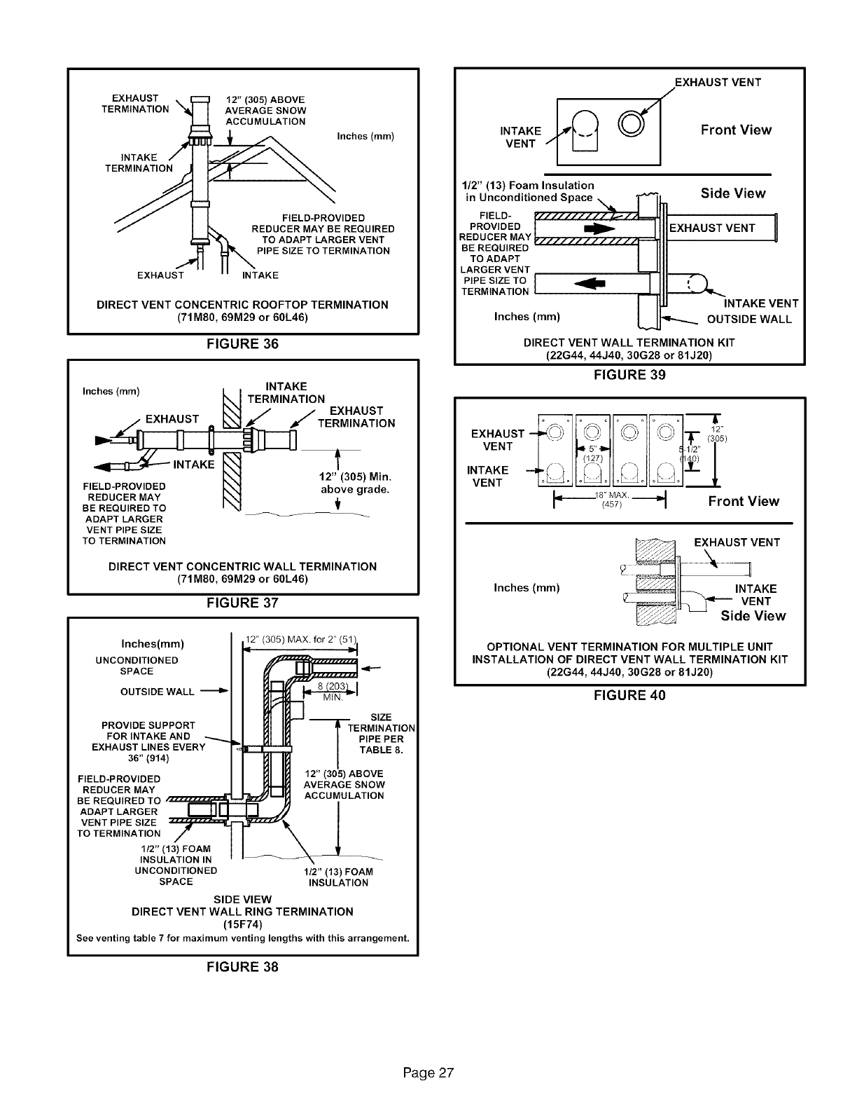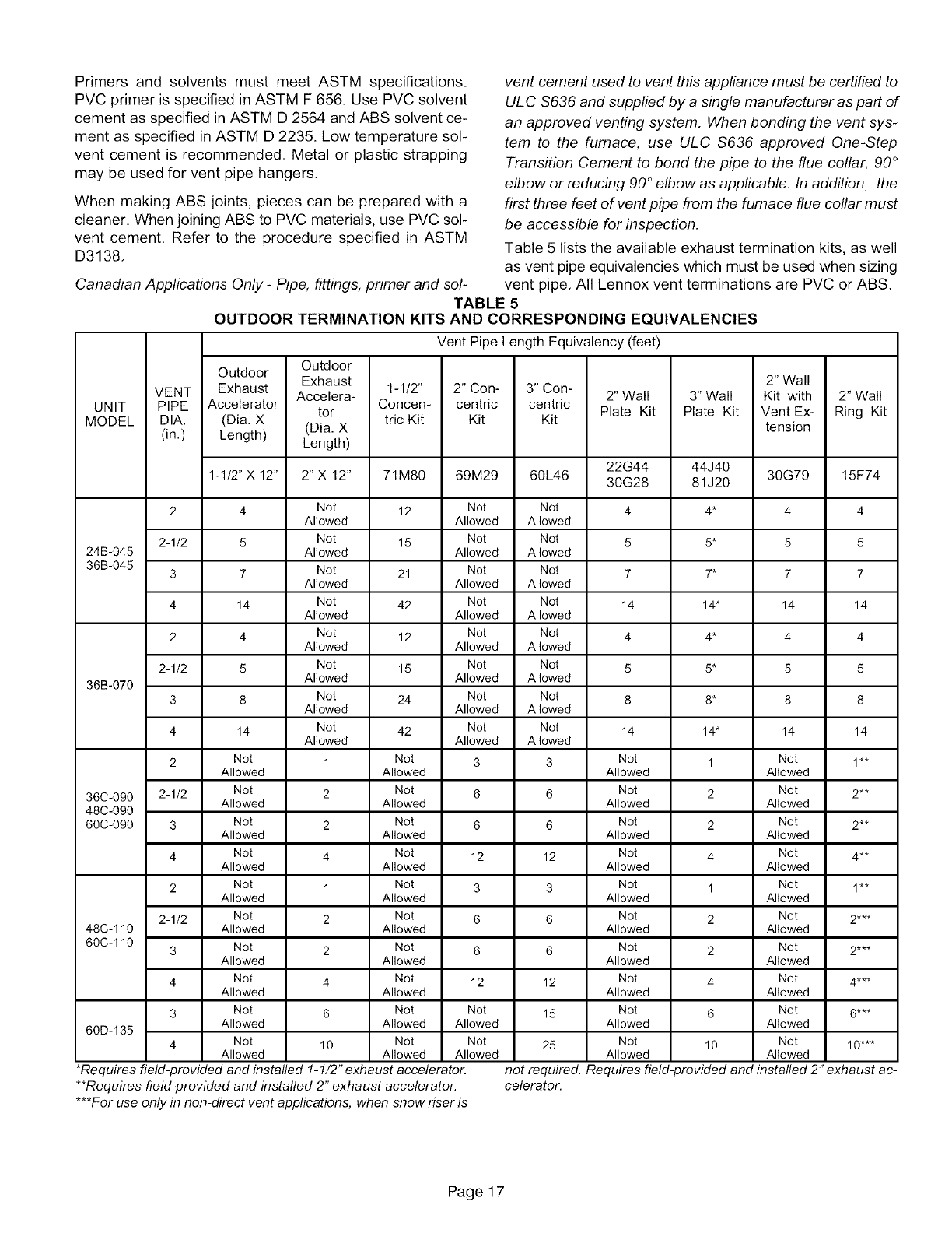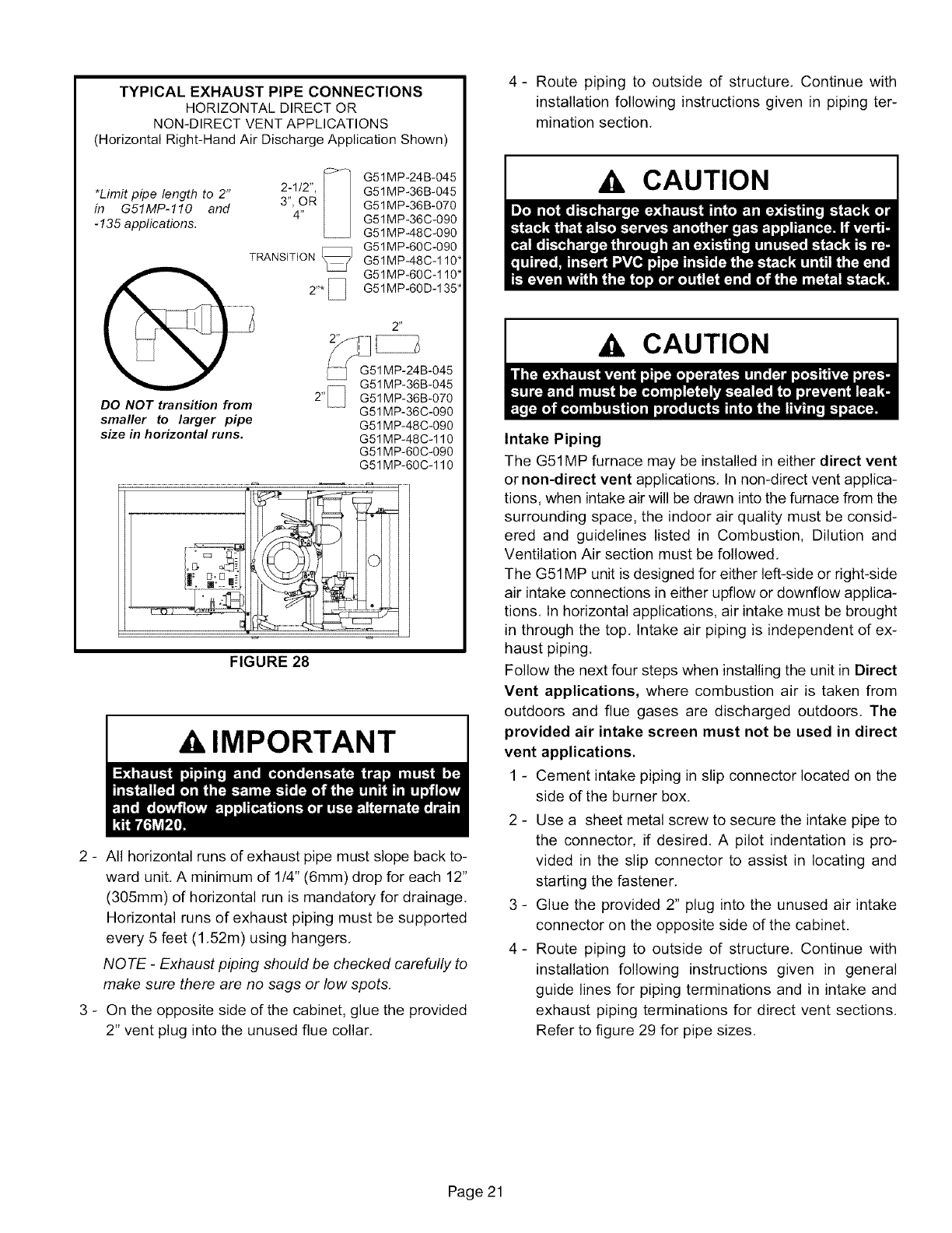 NOTE -In Direct Vent systems, total the equivalent length of either the exhaust OR intake piping run, depending upon which