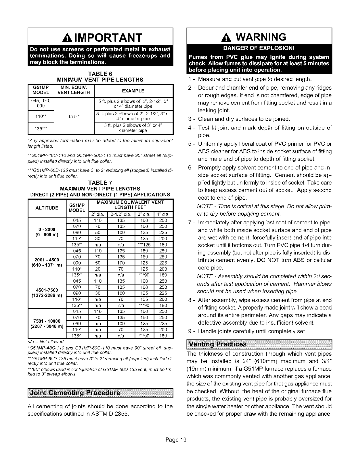 Vent Piping Guidelines ......................... 18