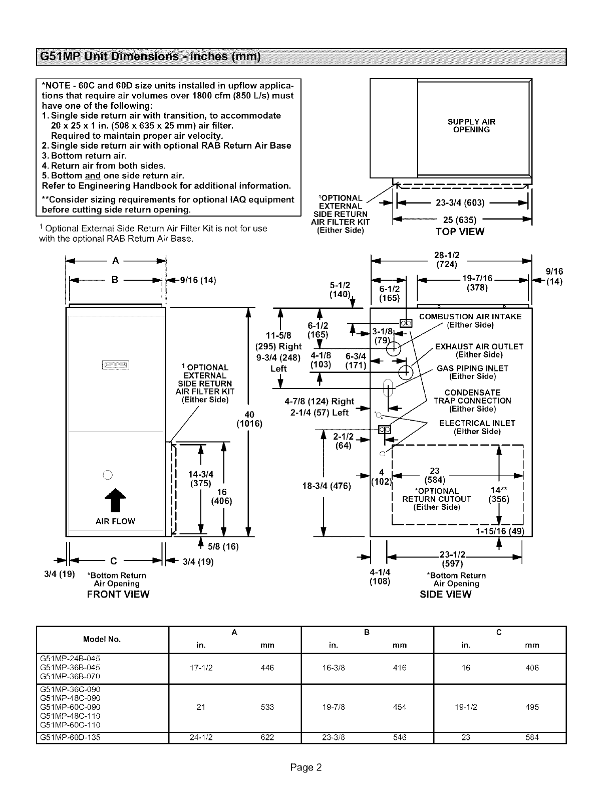 *NOTE - 60C and 60D size units installed in upflow applica-