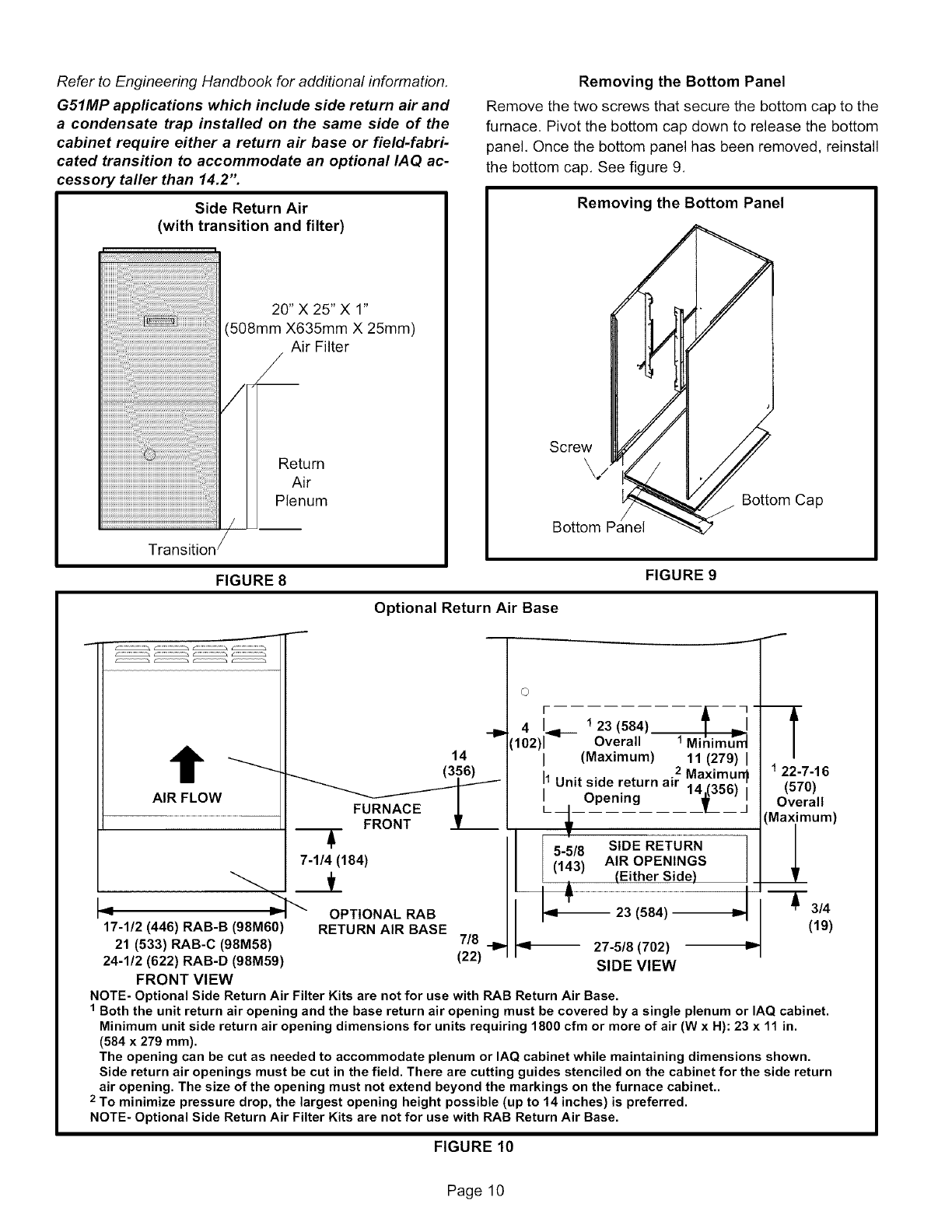 2. Single side return air with optional RAB Return Air Base