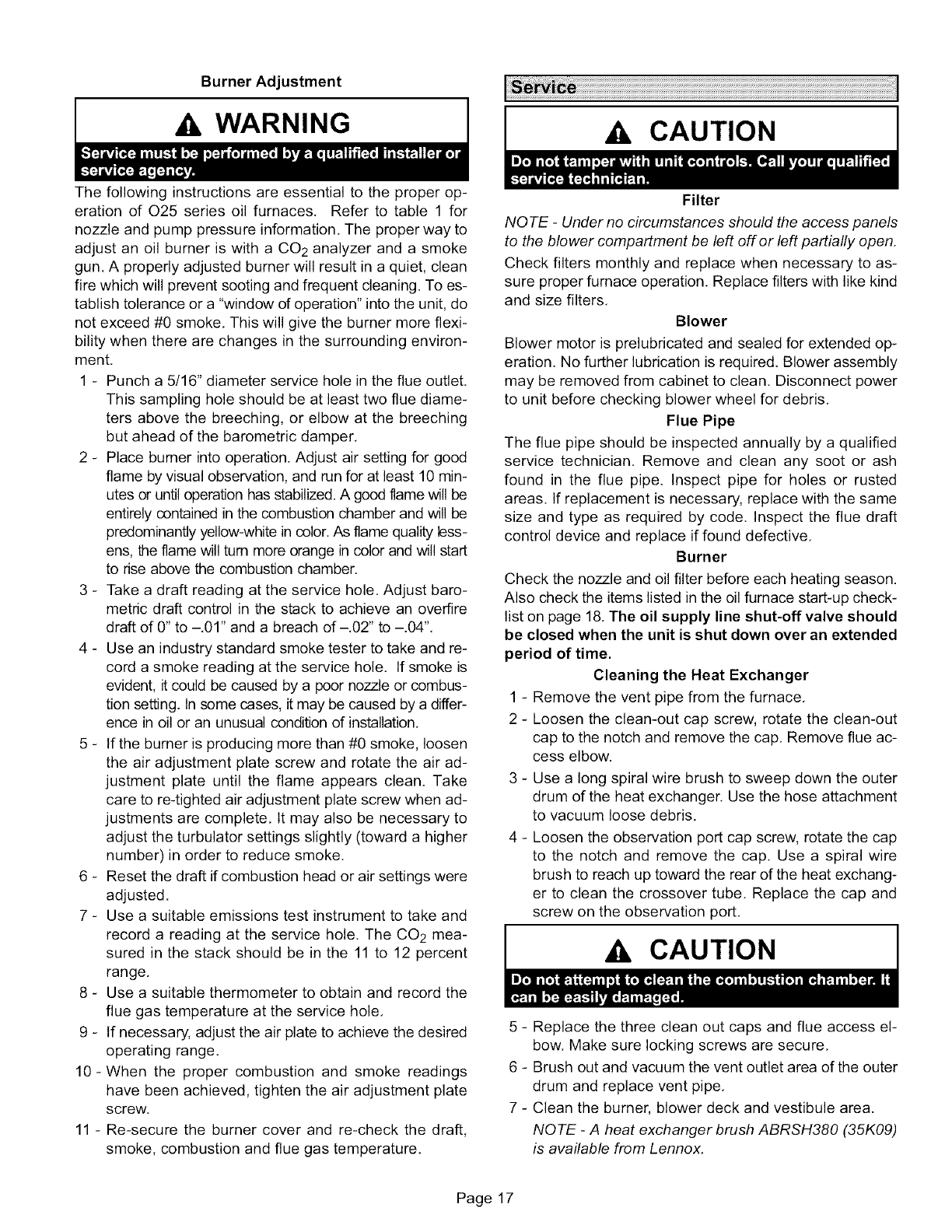 LENNOX Furnace/Heater, Oil Manual L0806374