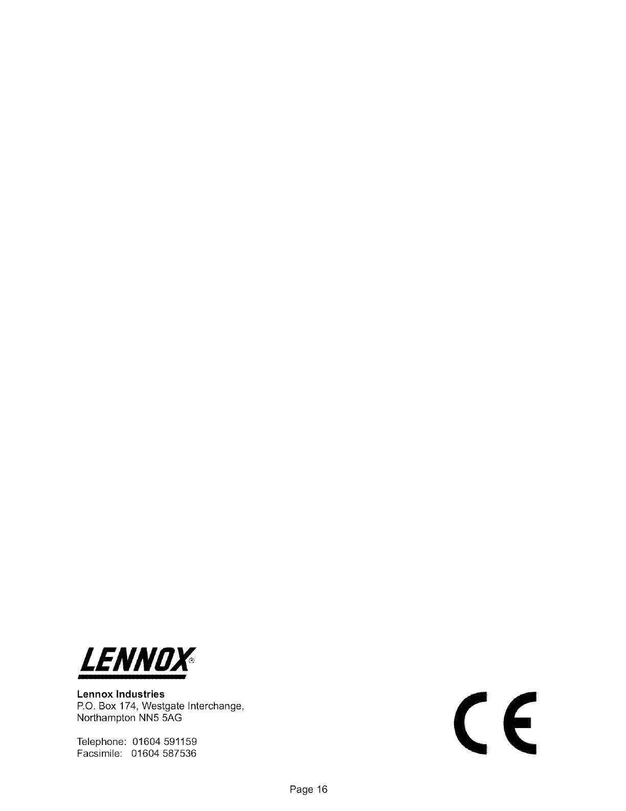 LENNOX Air Conditioner/heat Pump(outside Unit) Manual L0806493
