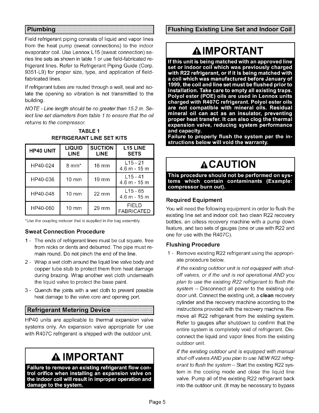 ing indoor coil and line set as outlined in the Lennox Engi-