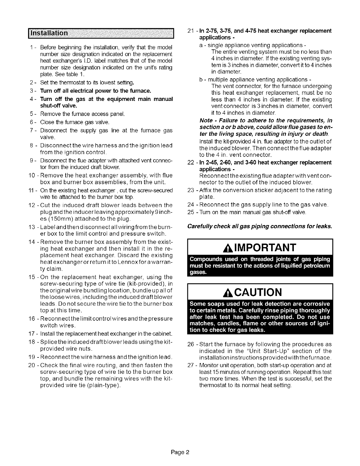 heat exchanger or return it to Lennox for a warran-
