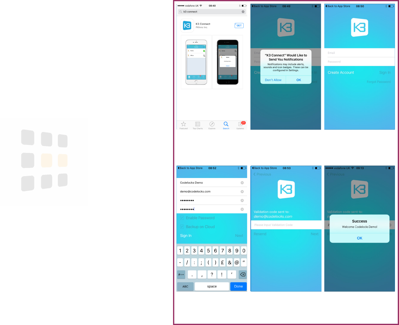 By pairing the lock with a Smartphone, you will be able to manage the lock with the K3 Connect App (available from the