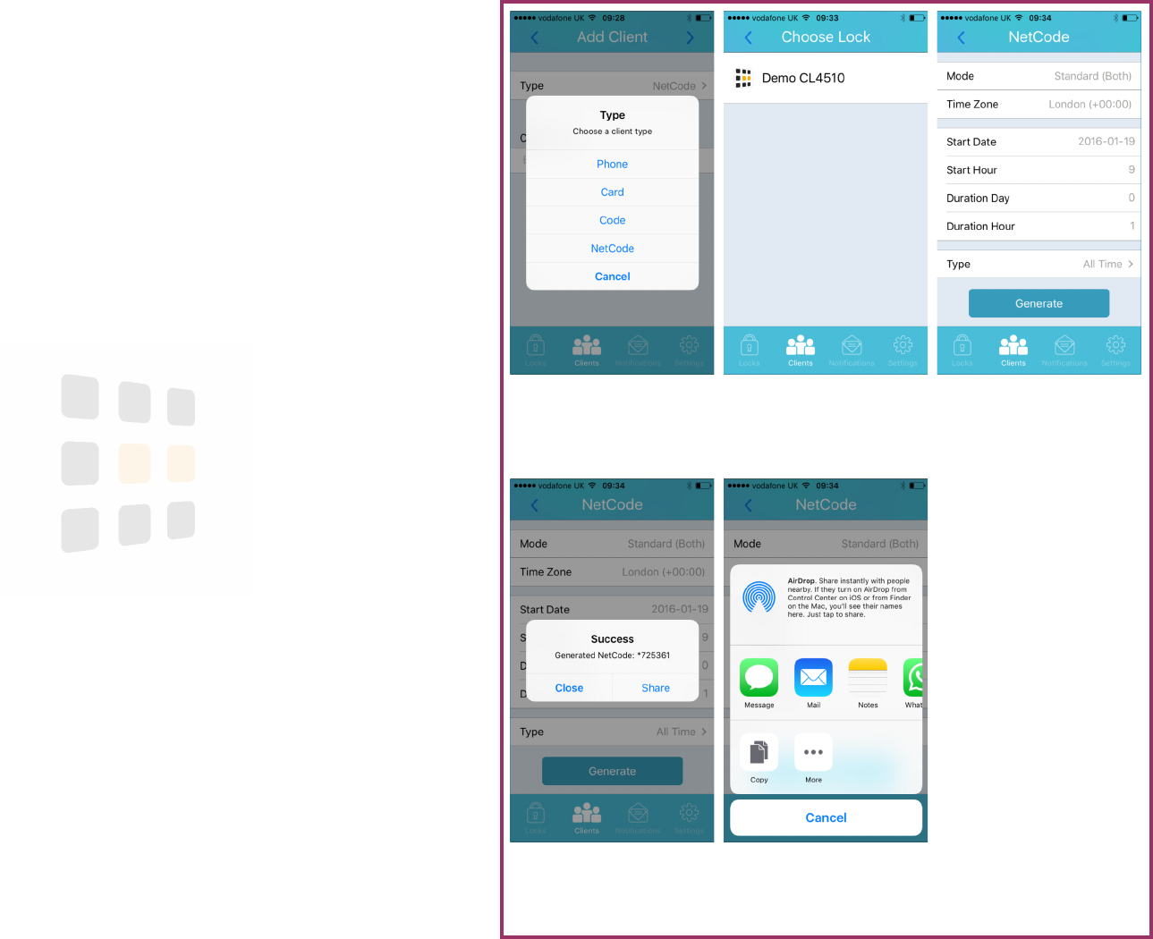 Before NetCode can be used, the lock must be set-up first. The program below is provided for reference only. To