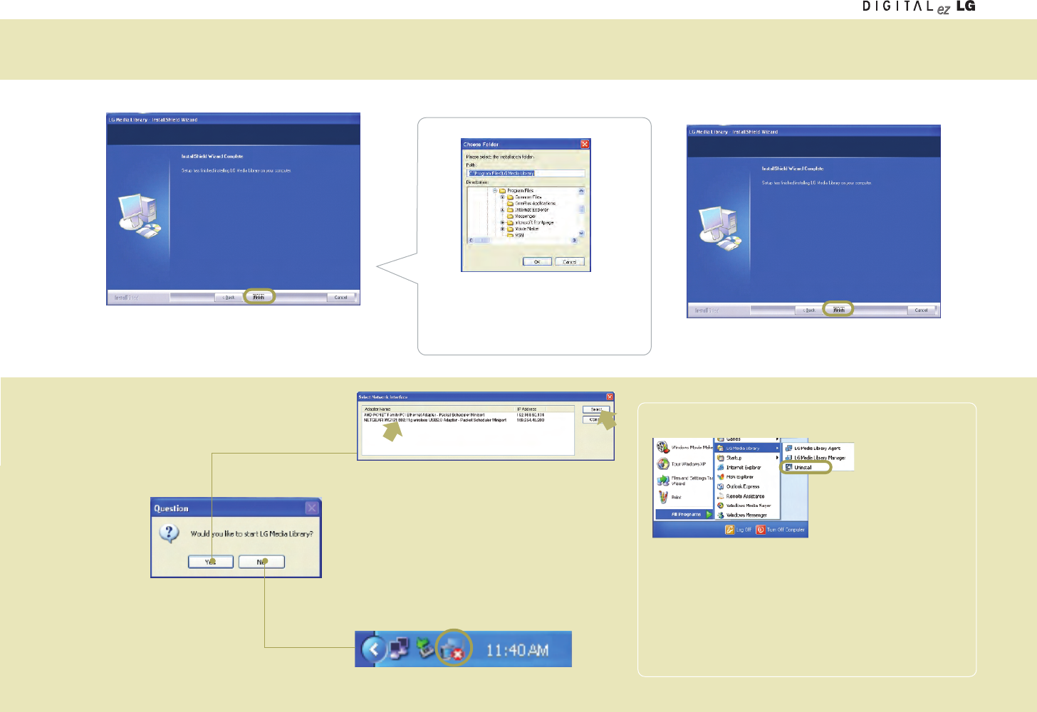 If the computer to install the Media Library is not equipped with the wireless LAN card (or, Access Point(AP)), install it first.