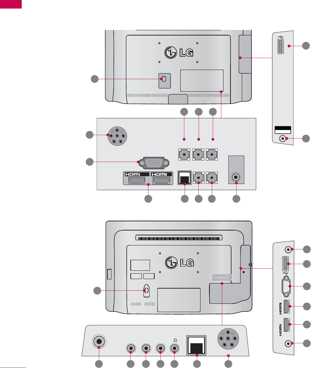 on the back and/or on one side of the TV.