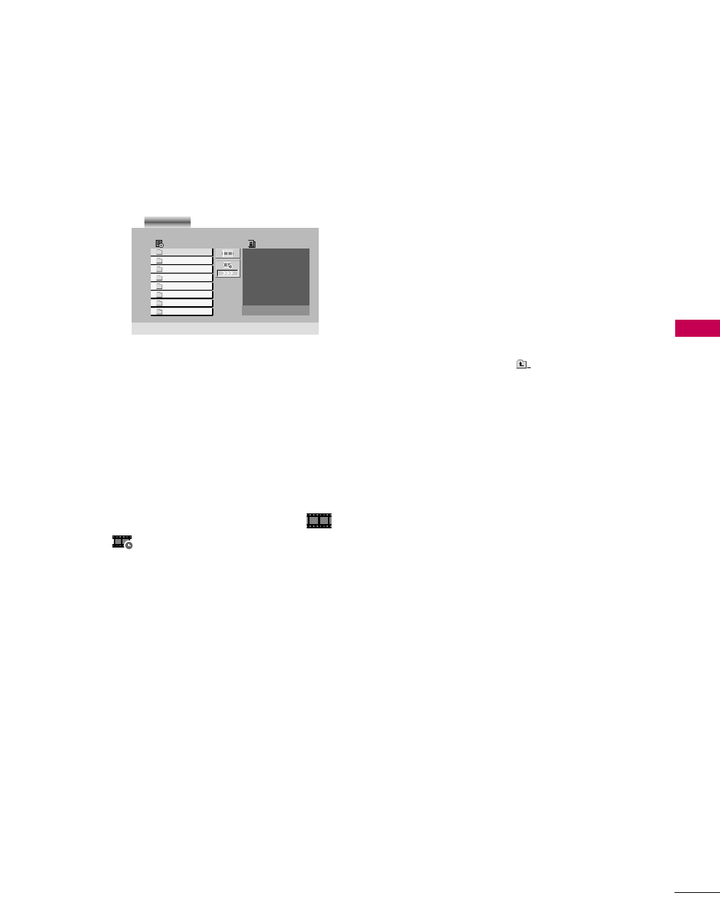 Insert a disc and close the tray. The DVD-VR menu appears on the TV screen.