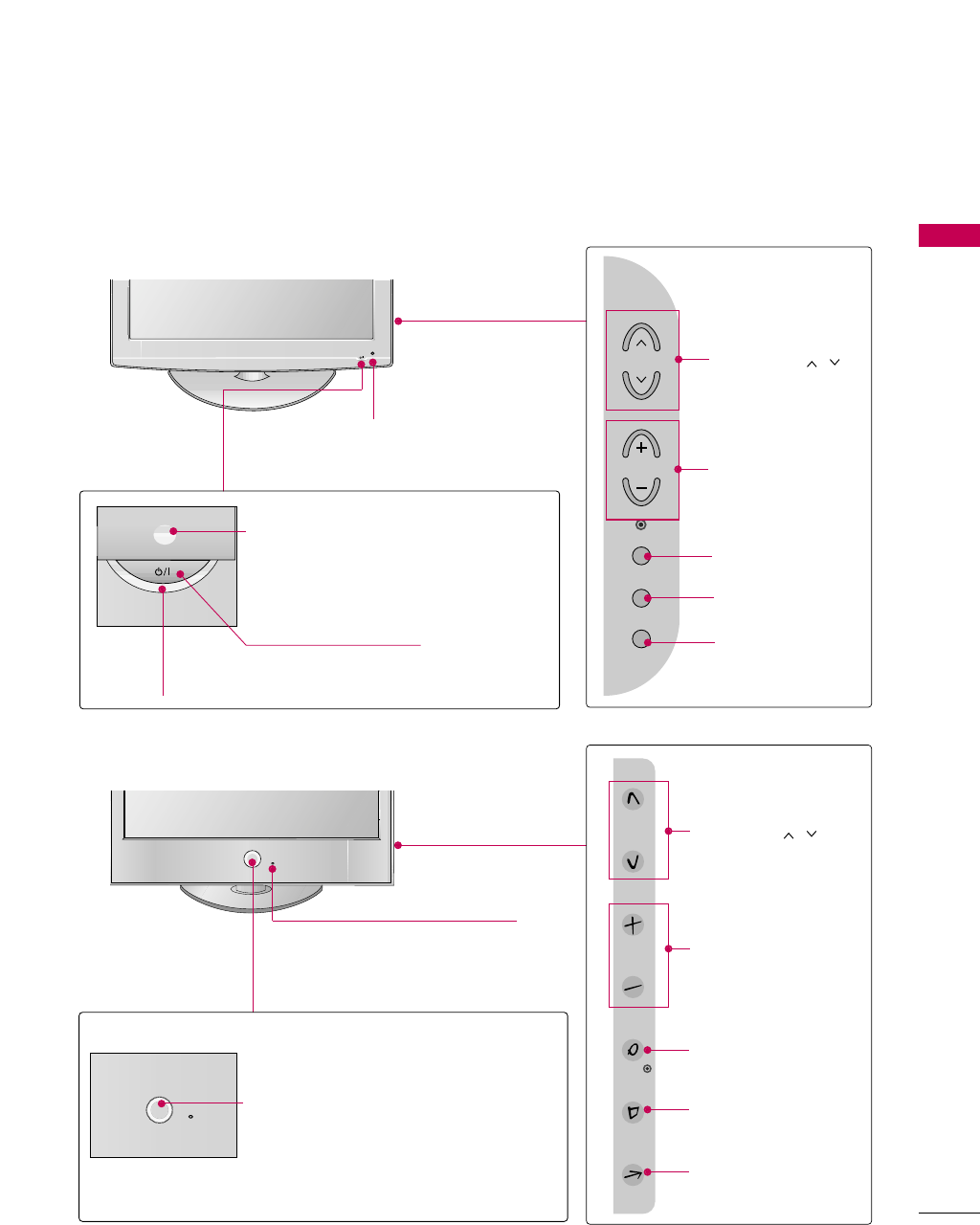 button on the TV or press the POWER, INPUT, CH( or ), Number