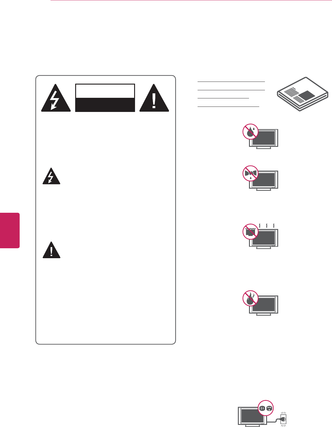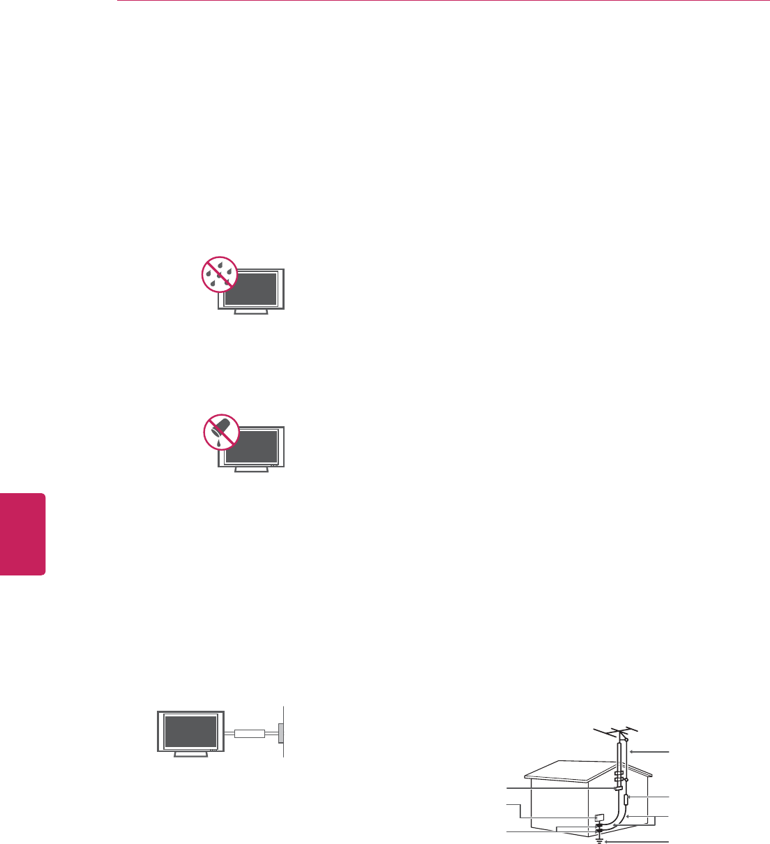 y 'RQRWVSUD\OLTXLGRQWRWKHVXUIDFH,IZDWHUHQWHUVWKH79LWPD\UHVXOWLQILUHHOHFWULFVKRFNRU