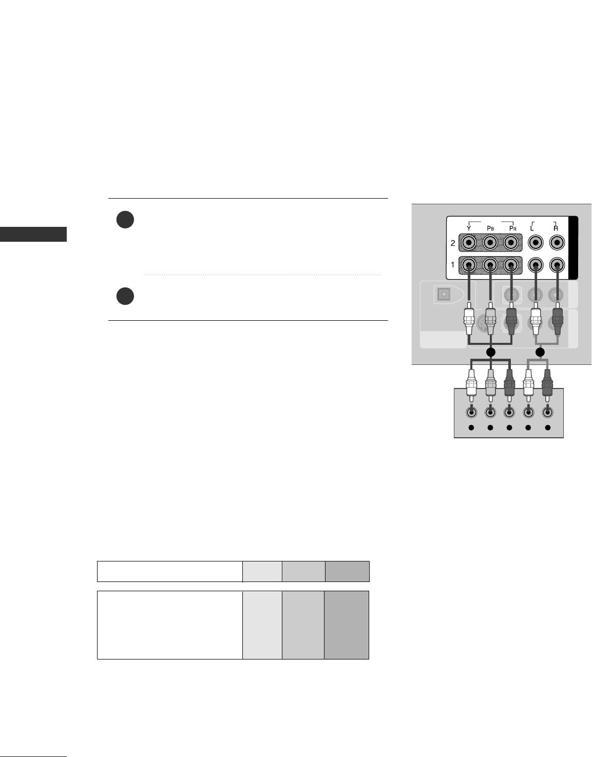 Connect the video outputs (Y, PB, PR)of the DVD to