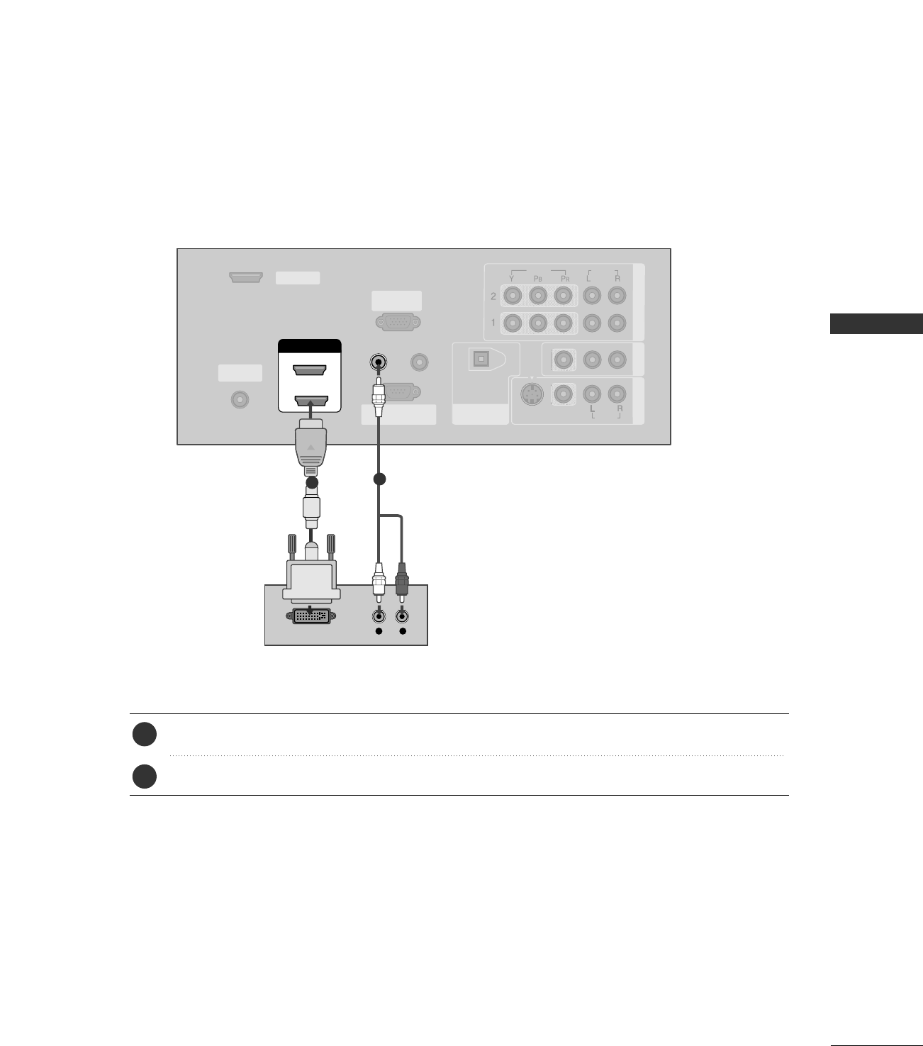 Connect the DVI output of the digital set-top box to the HHDDMMII//DDVVII IINN 11or 22 jack on the set.