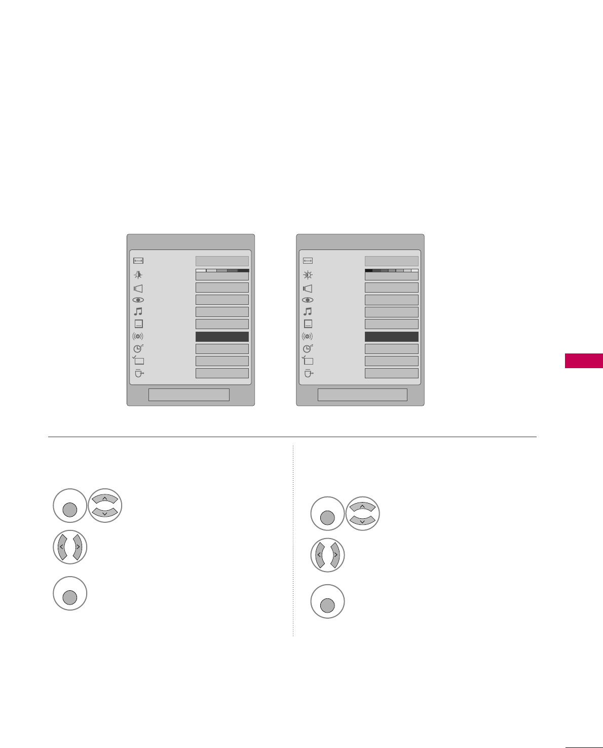 ■BBaacckklliigghhtt (LCD TV Only): Adjust the brightness