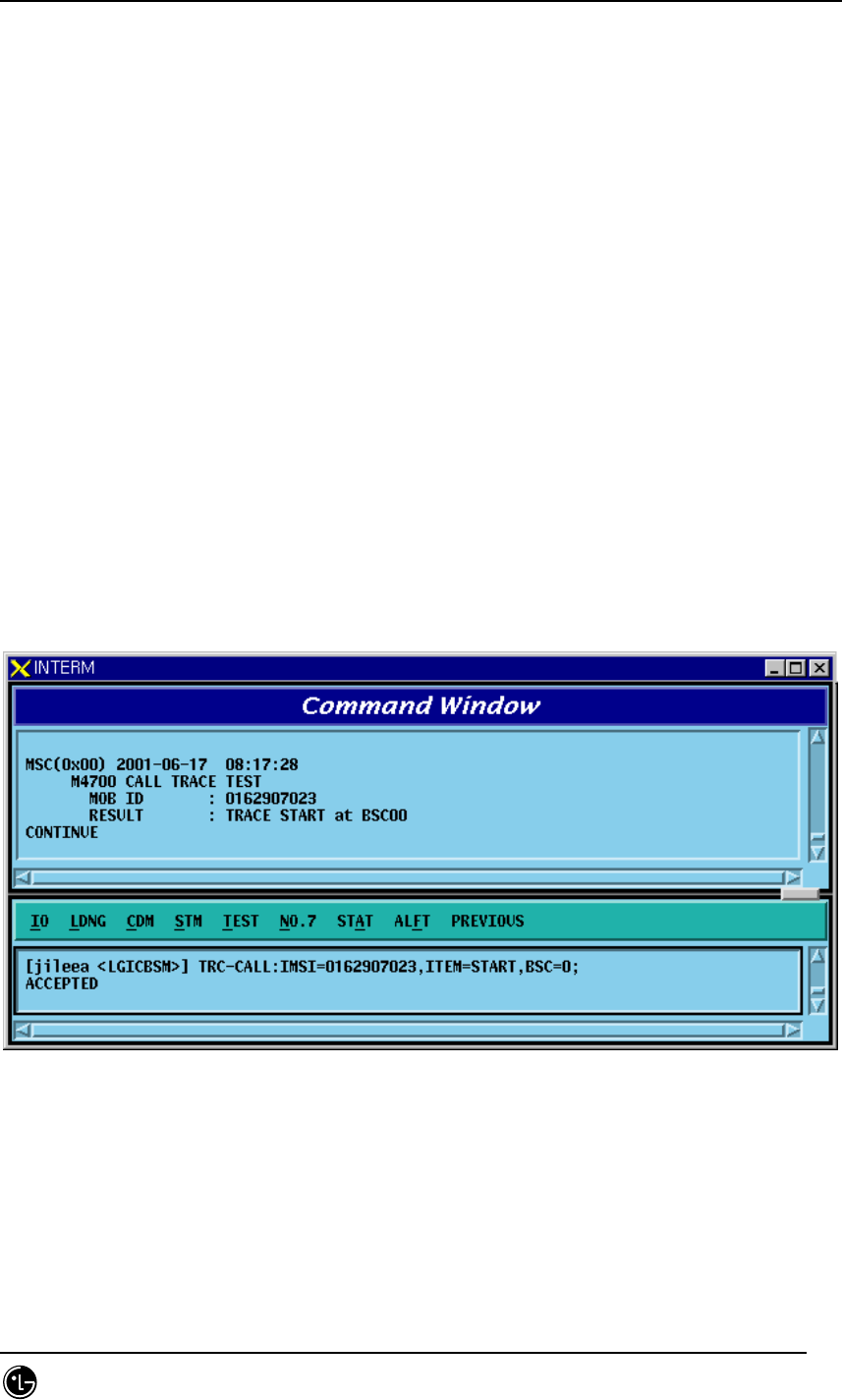 This function is operated by inputting the IMSI of MS to trace, duration, etc in BSM and