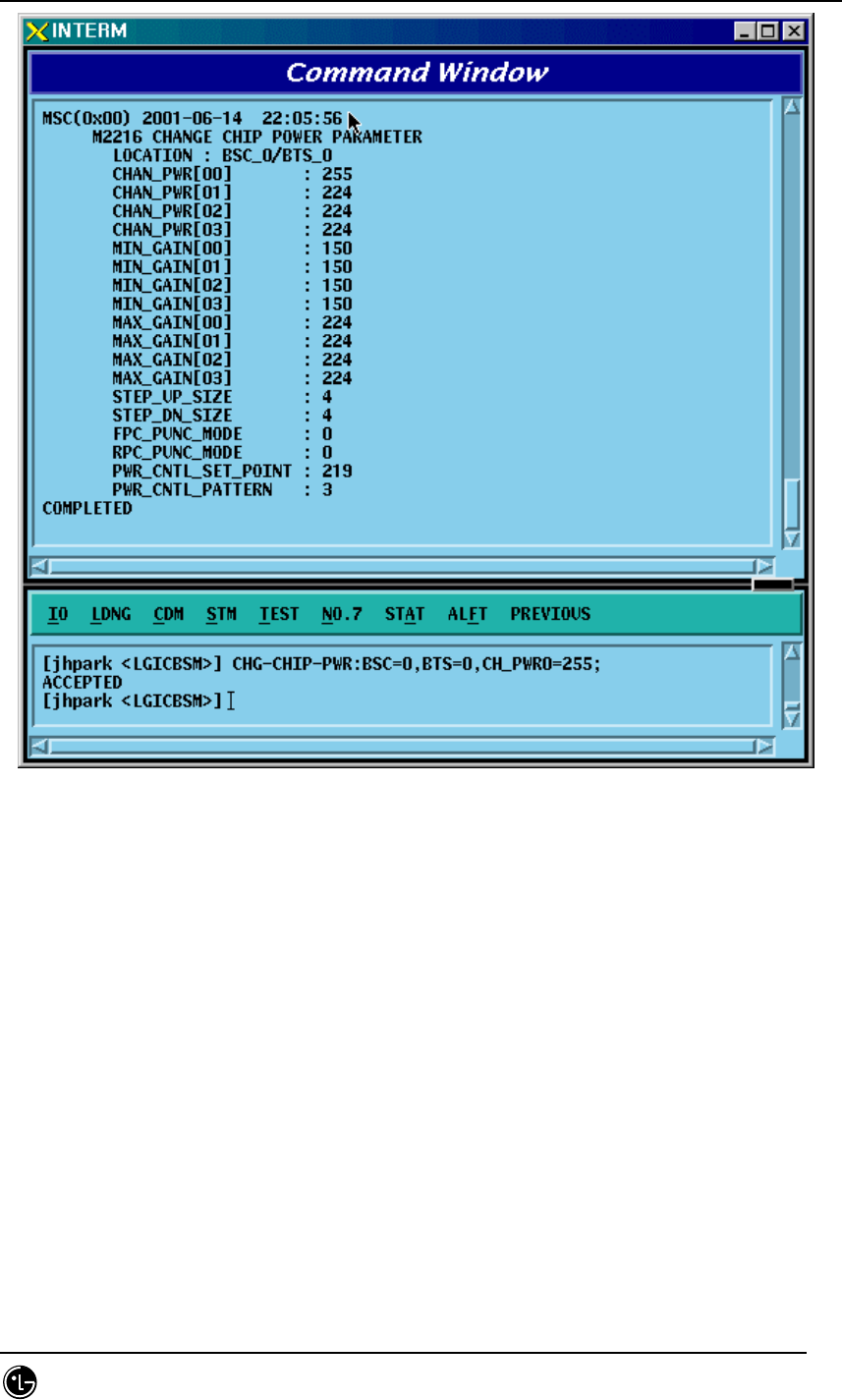 • Input CHG-PWR3-CTRL :BSC=0 ,BTS=0 ,FER=0 ,USE_REV_P=NOUSE_REV_P ,