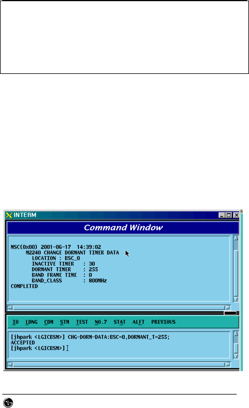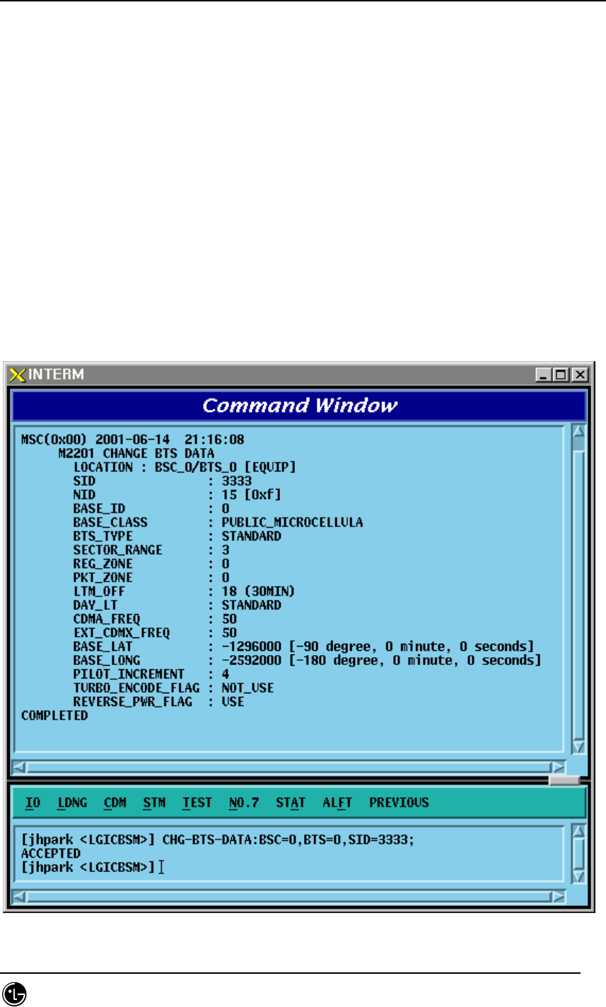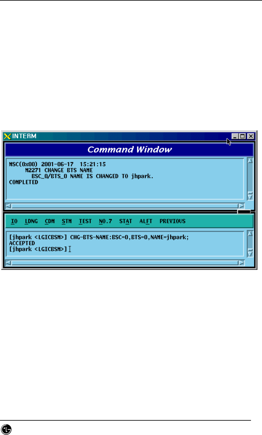 • Input CHG-BTS-NAME :BSC=0 ,BTS=0 ,NAME=jhpark;