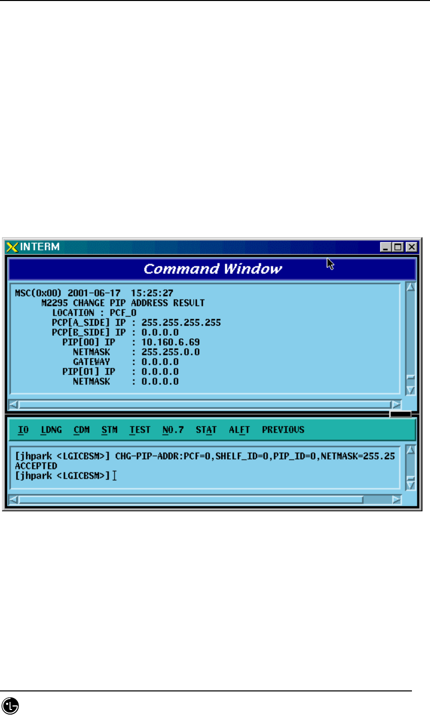 • Input CHG-PIP-ADDR :PCF=0 ,SHELF_ID=0 ,PIP_ID=0, NETMASK=255.255.0.0;