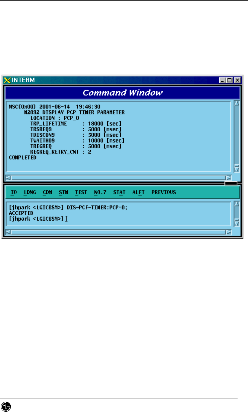 • Input CHG-PCF-TIMER :PCP=0,TRP_LIFETIME=255;