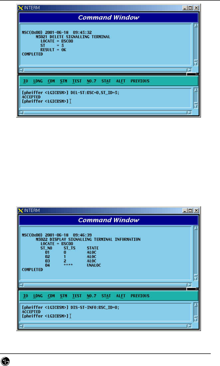 Input DEL-ST:BSC_ID=0,ST_ID = 5;