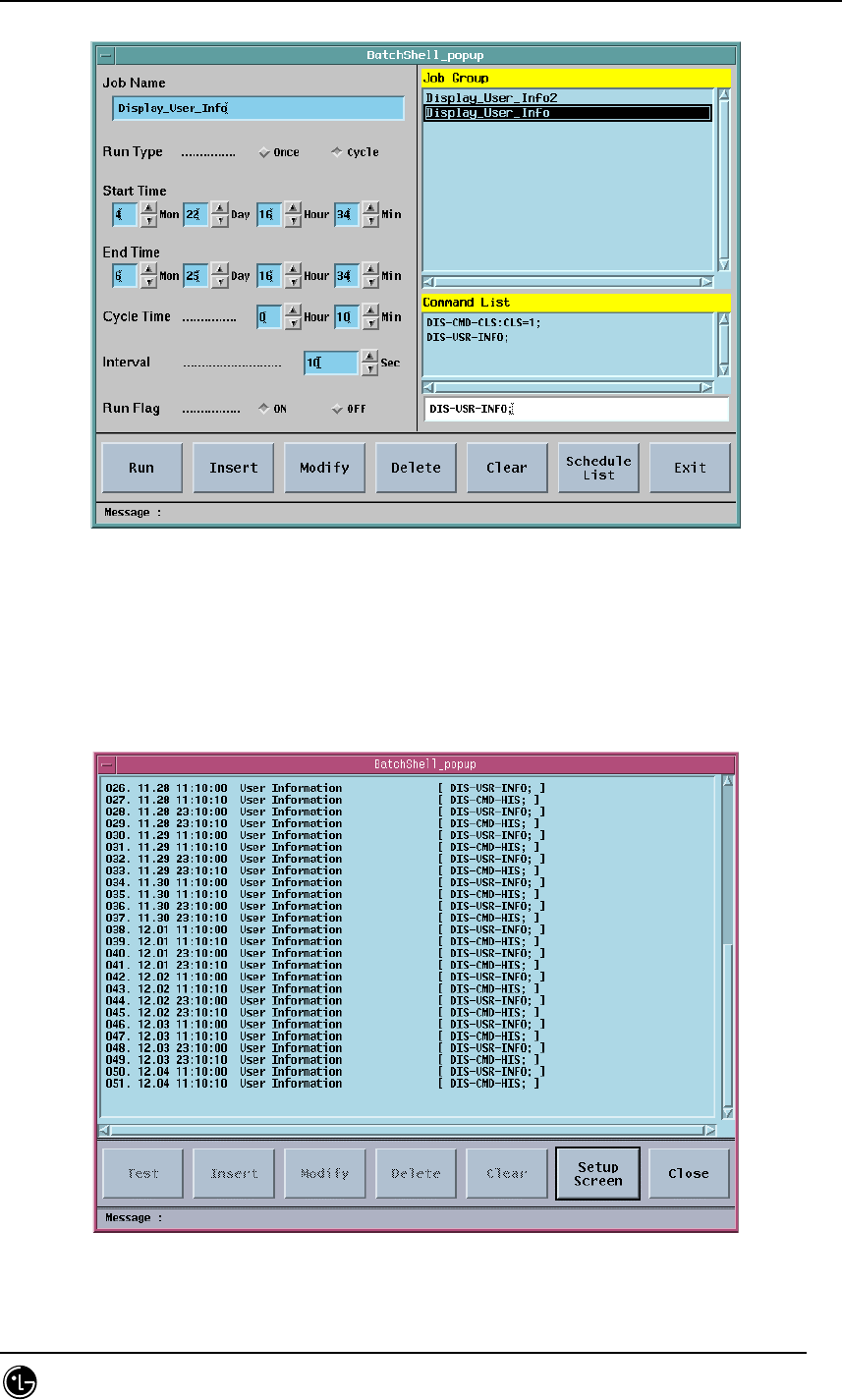 This menu shows the set jobs with their schedule. This menu shows setup window and