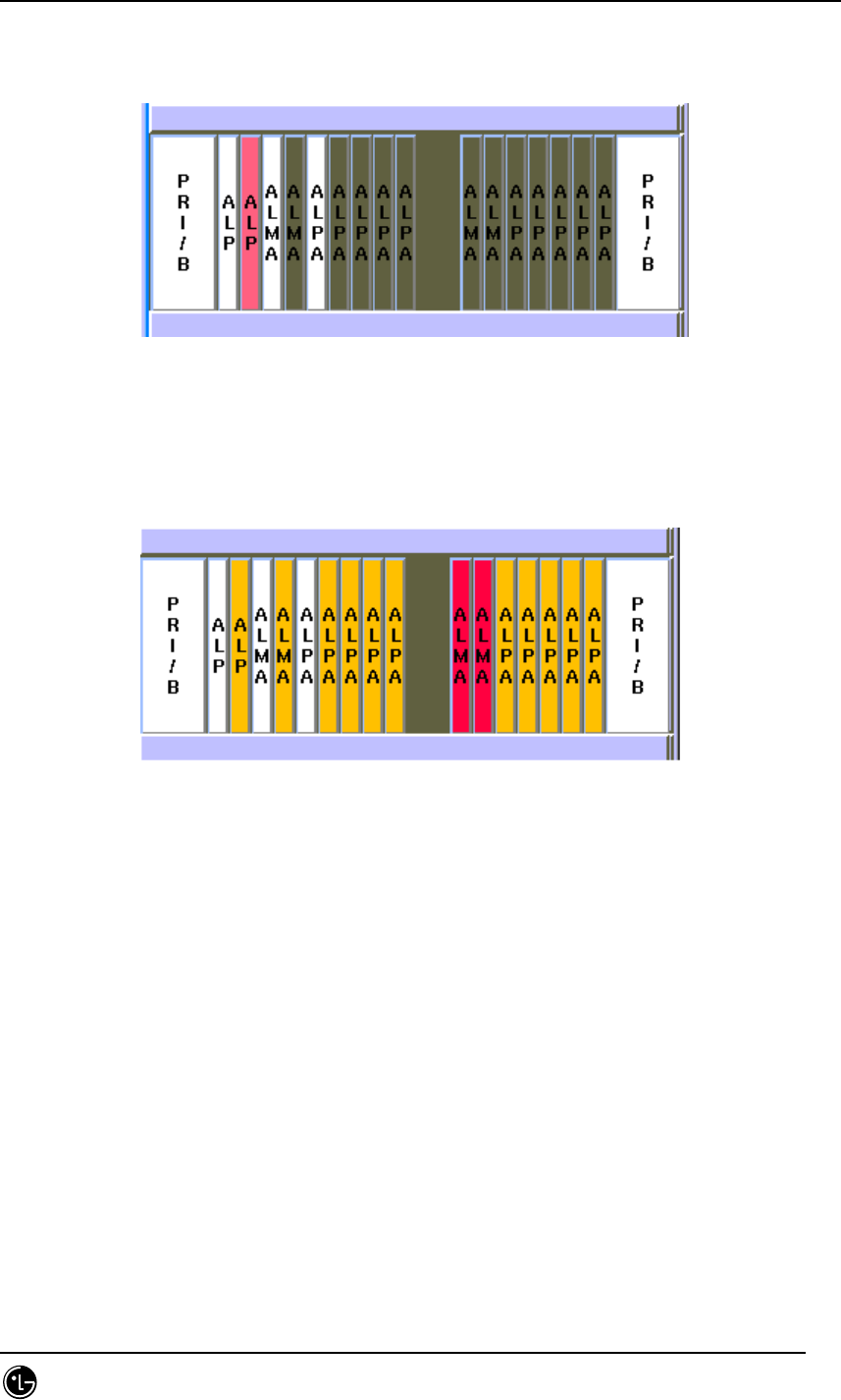 The color of each slot manifests the alarm information of equipped cards. For example,
