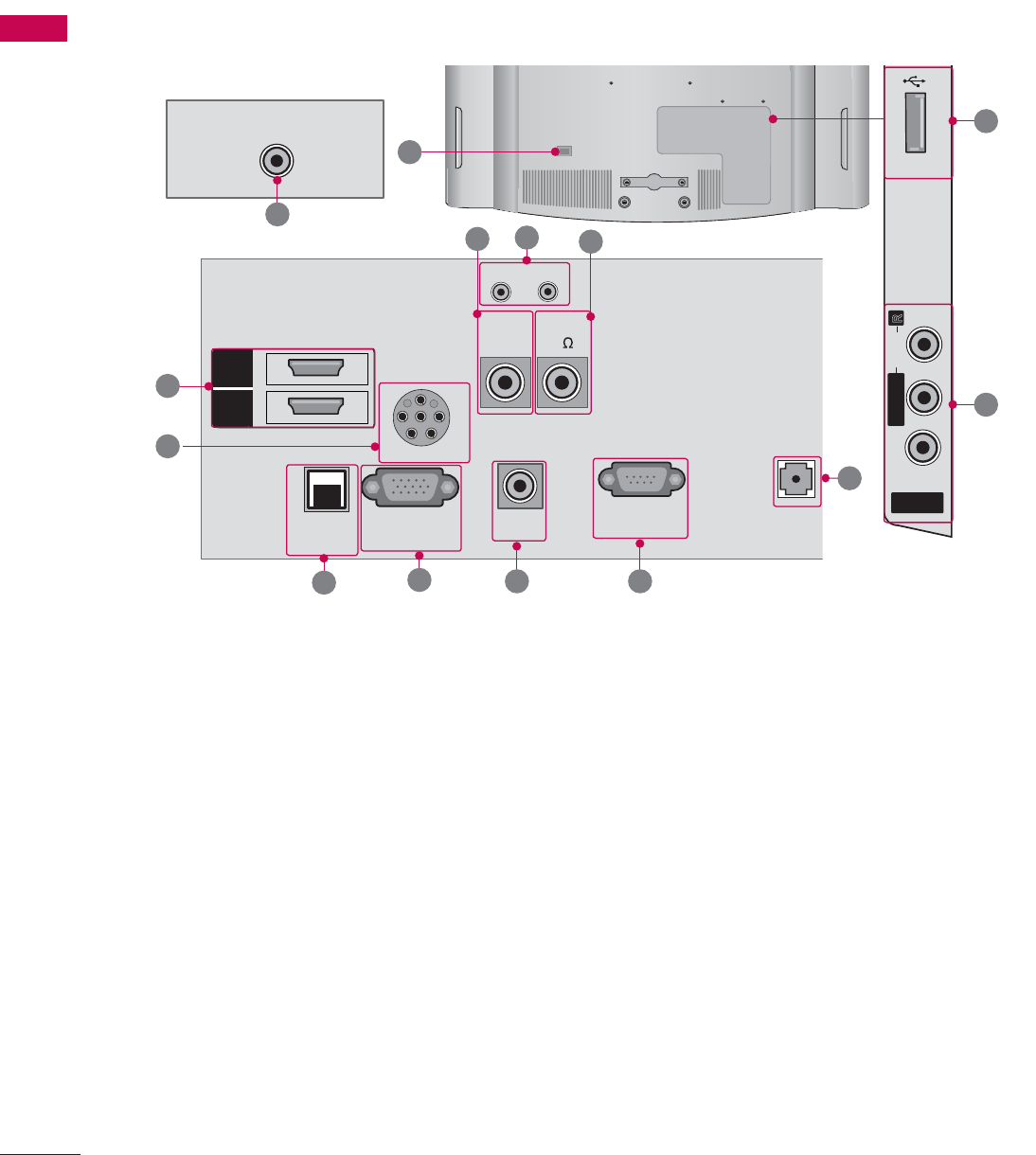 on the back and/or on one side of the TV.