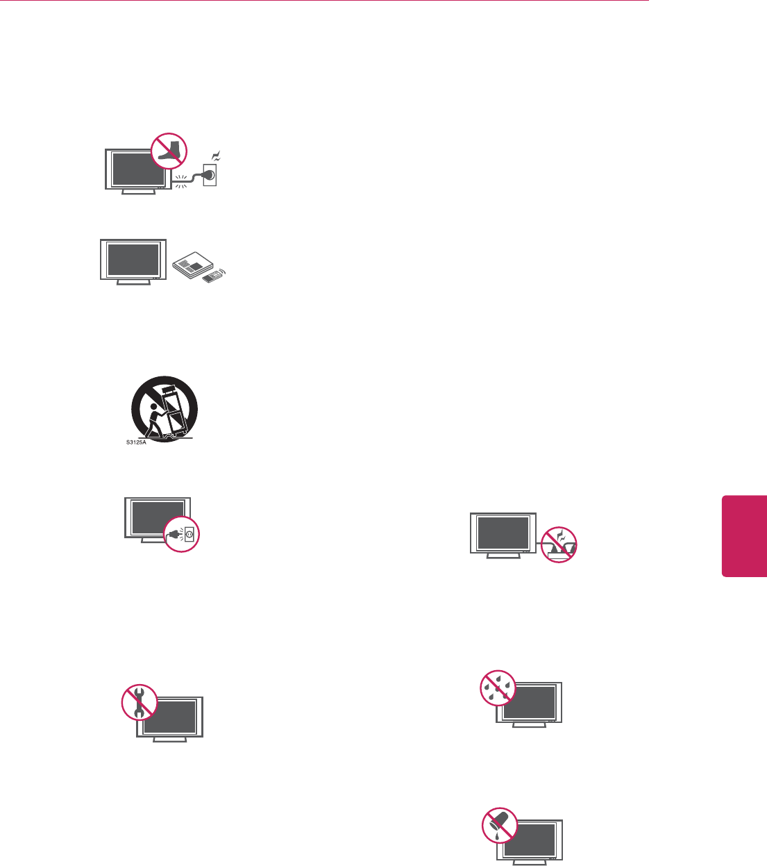 y 'RQRWVSUD\OLTXLGRQWRWKHVXUIDFH,IZDWHUHQWHUVWKH79LWPD\UHVXOWLQILUHHOHFWULFVKRFNRUPDOIXQFWLRQ
