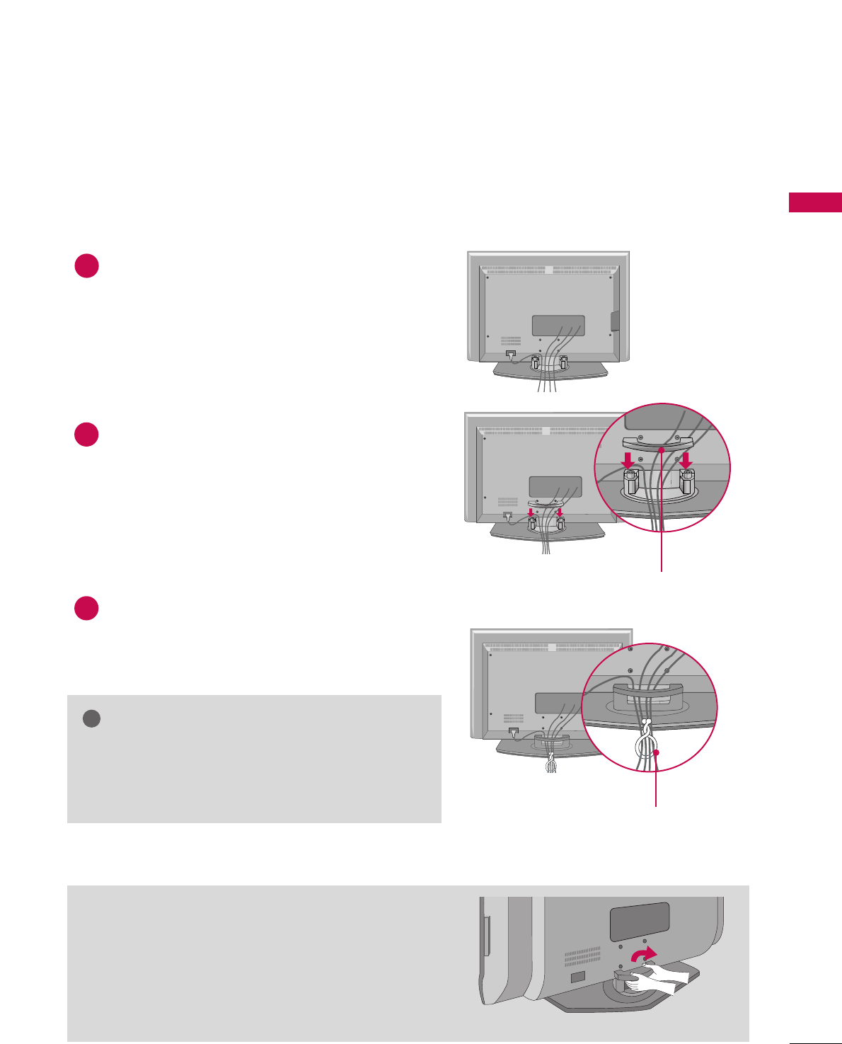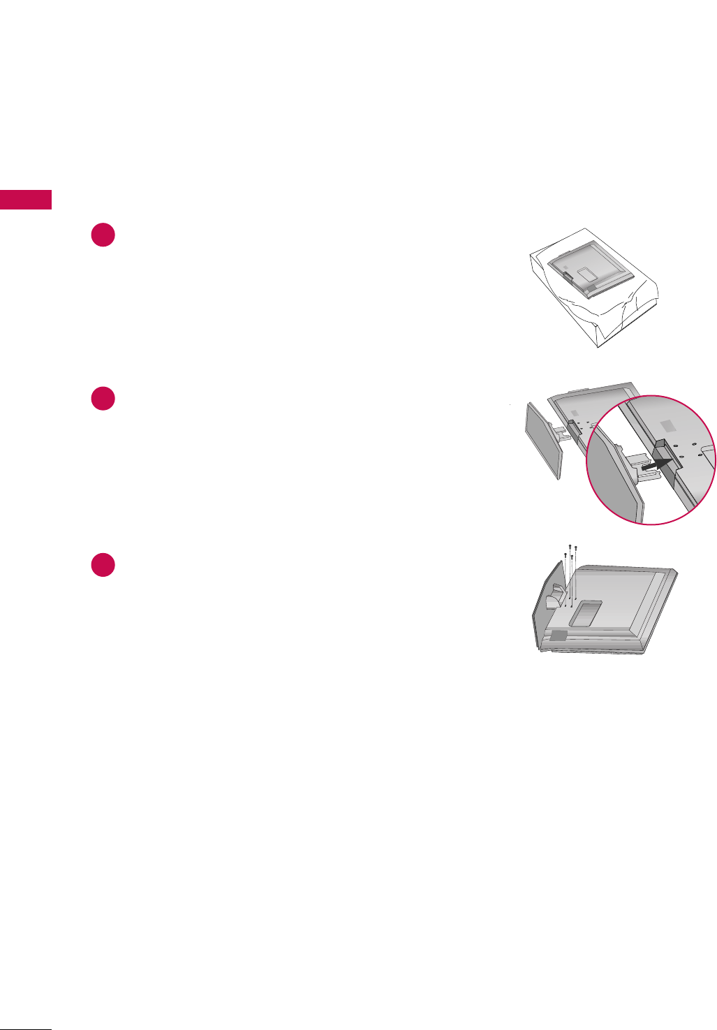 ■Insert the eye-bolts (or TV brackets and bolts) to tighten the product to the wall as shown in the picture.