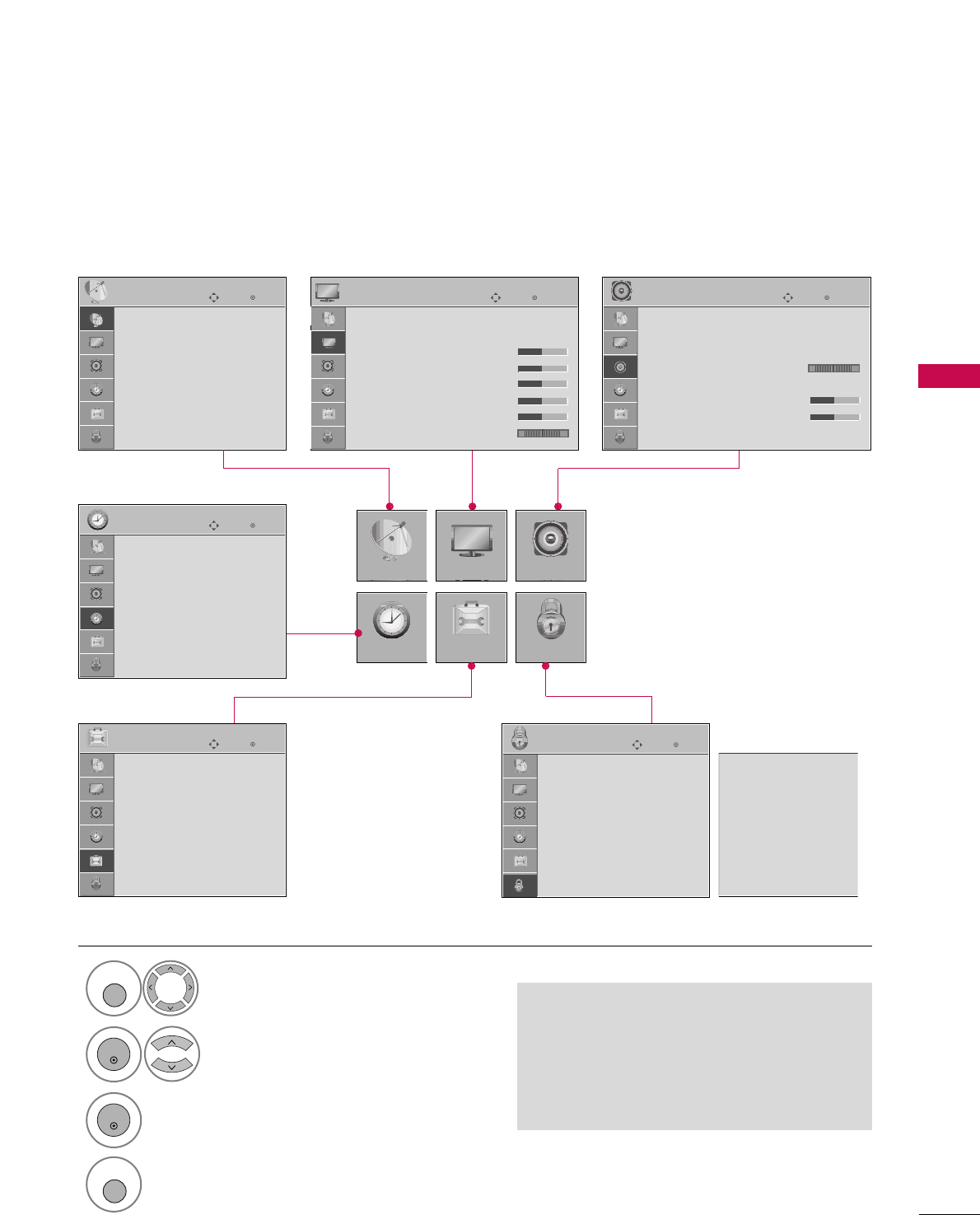 If selecting DTV or CADTV input signal, you can view the on-screen signal strength monitor to see the quality