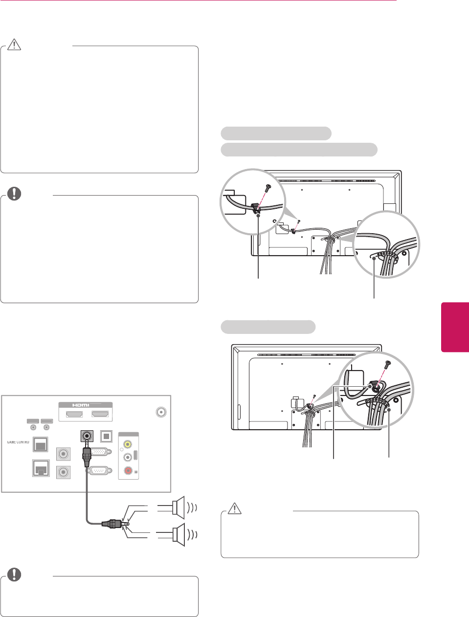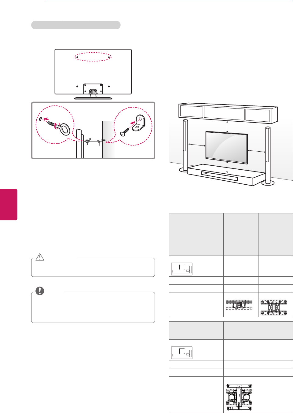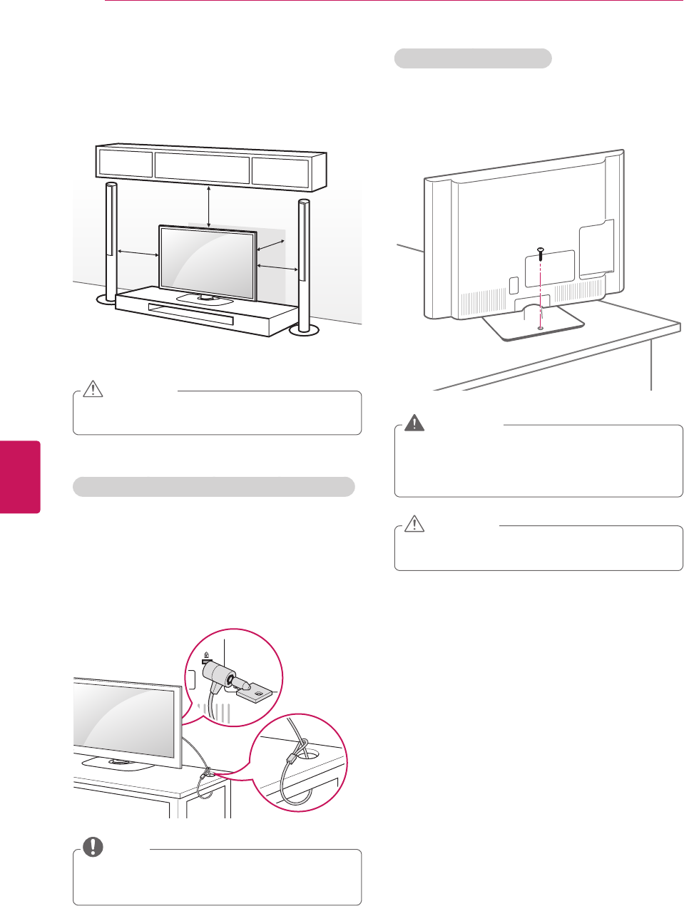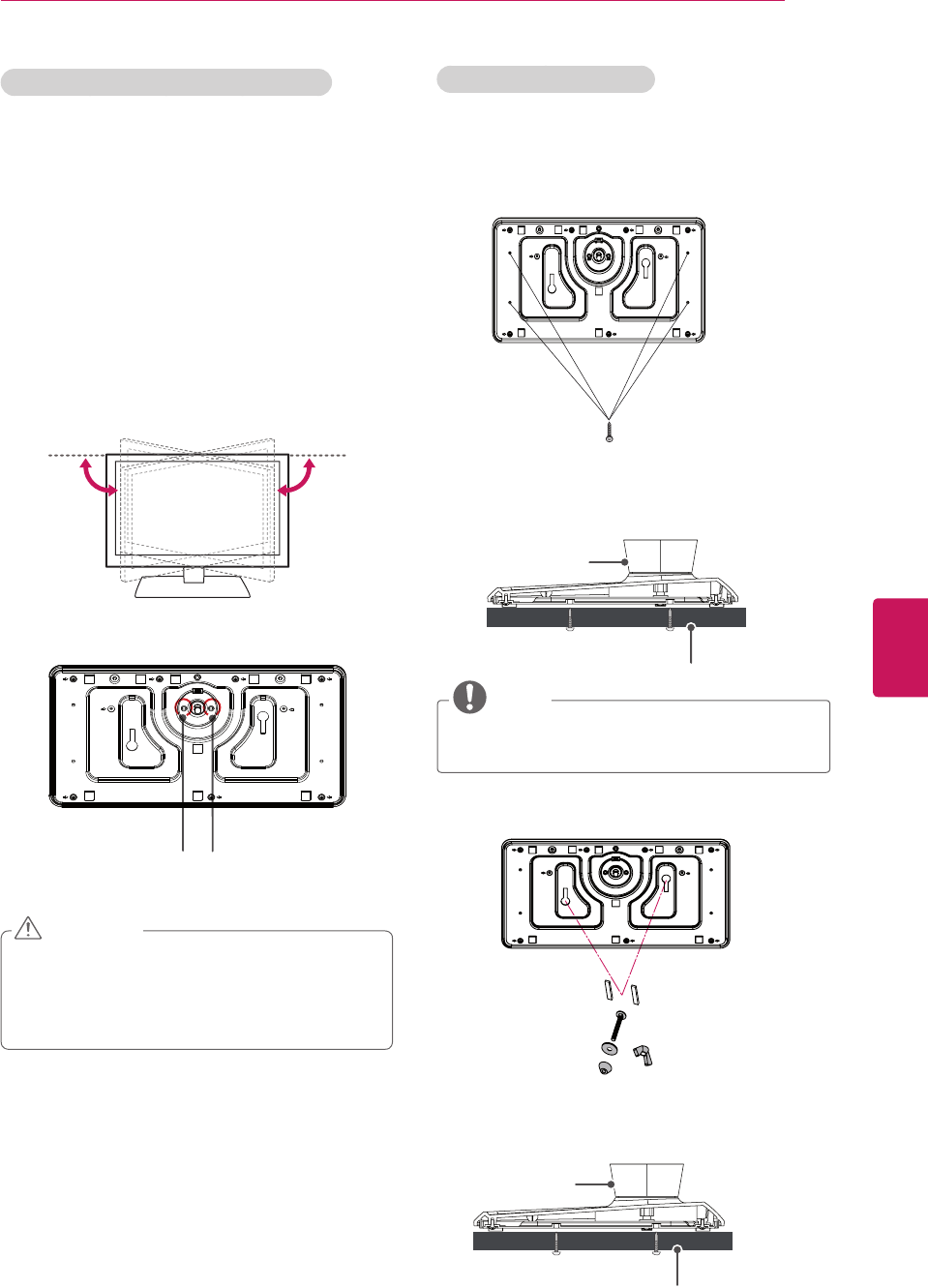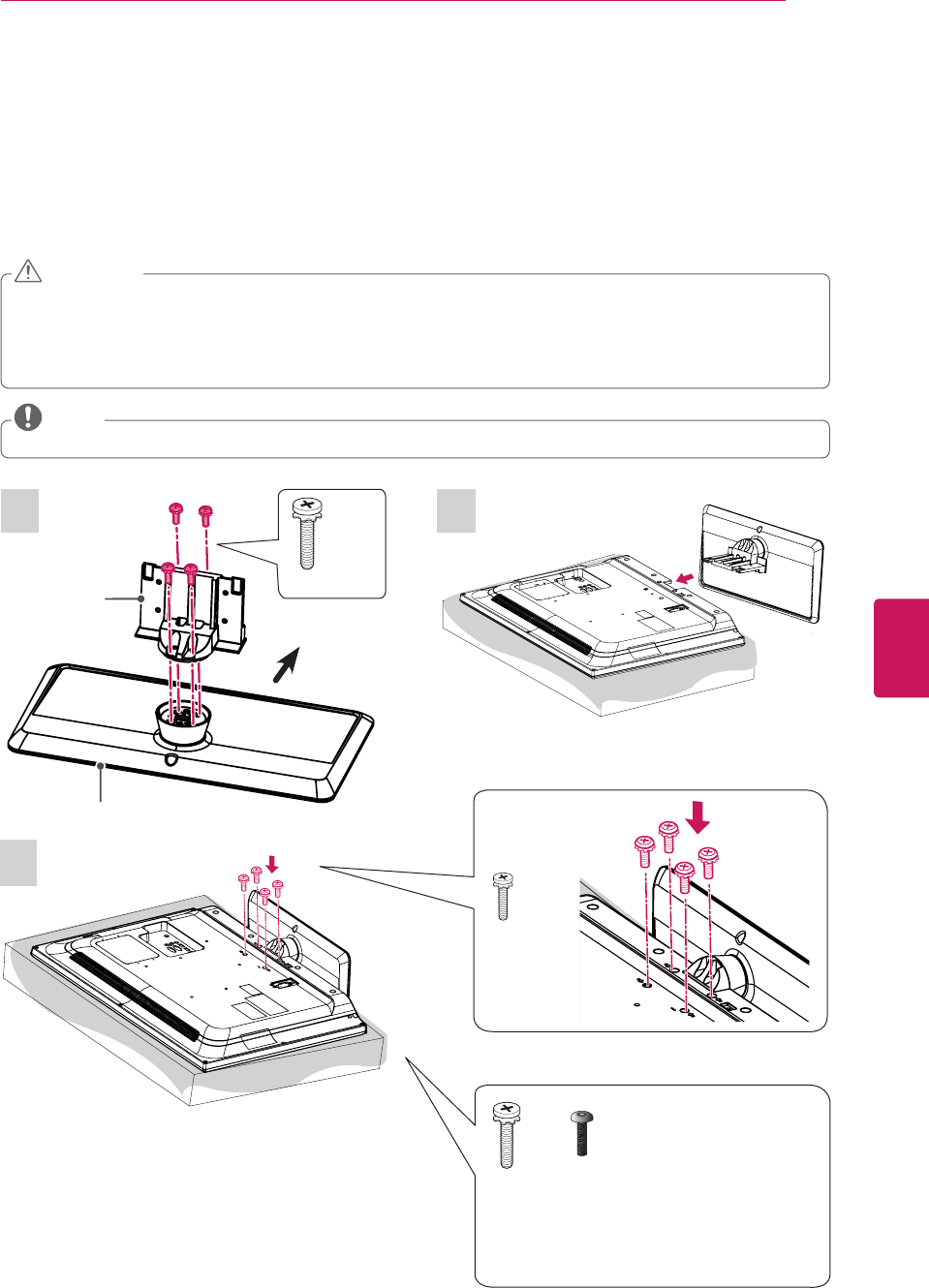 Make sure that the screws are fastened tightly. (If they are not fastened securely enough, the TV may tilt forward